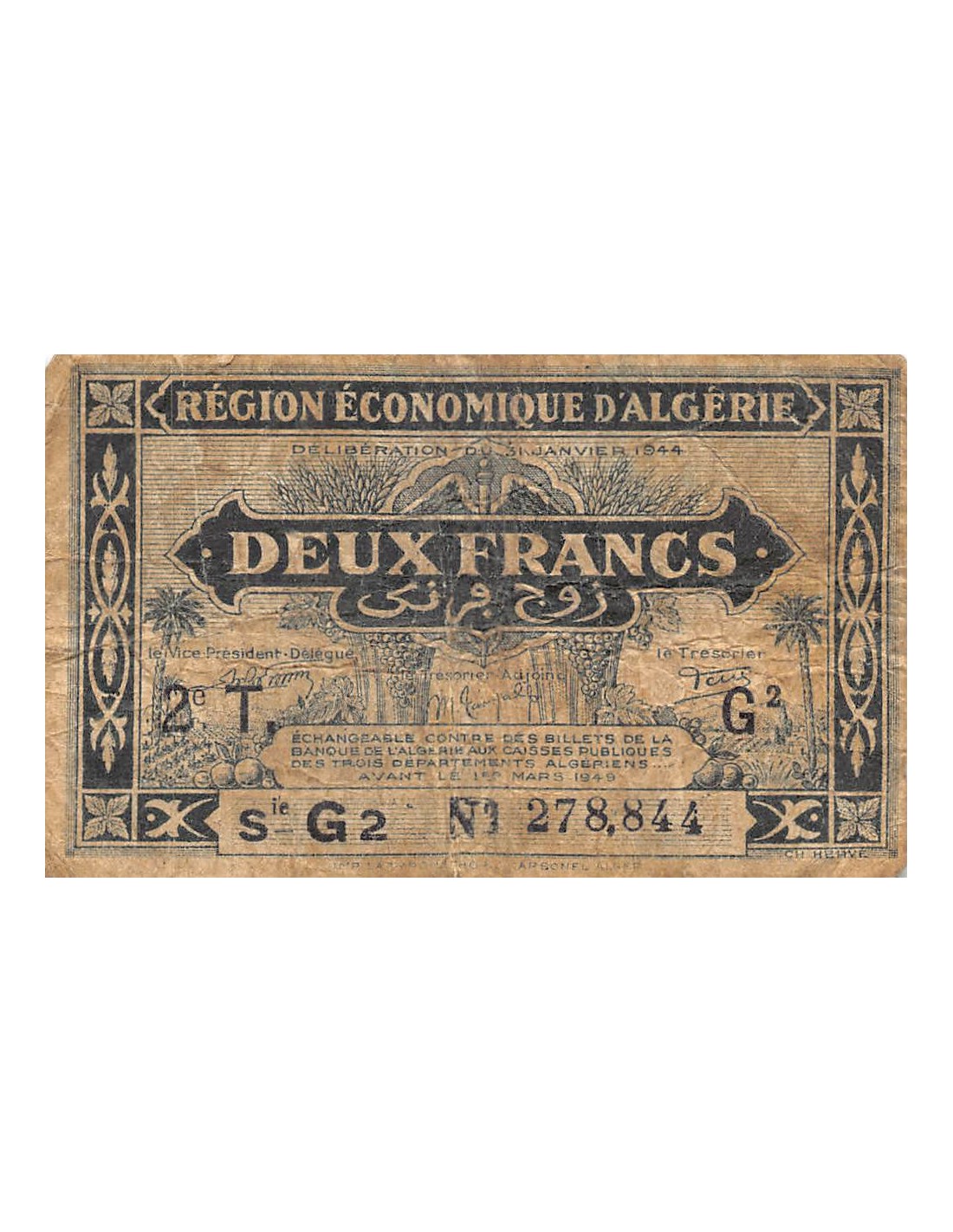 Vendu Afrique du Nord ALGERIE - 2 FRANCS 1944 2e tirage 10,00 € ALGERIE - 2 FRANCS 1944 2e tirage View