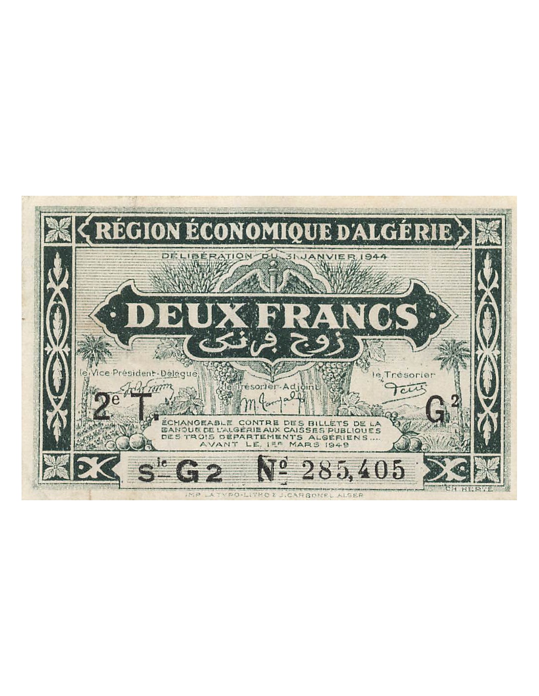 Vendu Afrique du Nord ALGERIE - 2 FRANCS 1944 2e tirage 10,00 € ALGERIE - 2 FRANCS 1944 2e tirage View