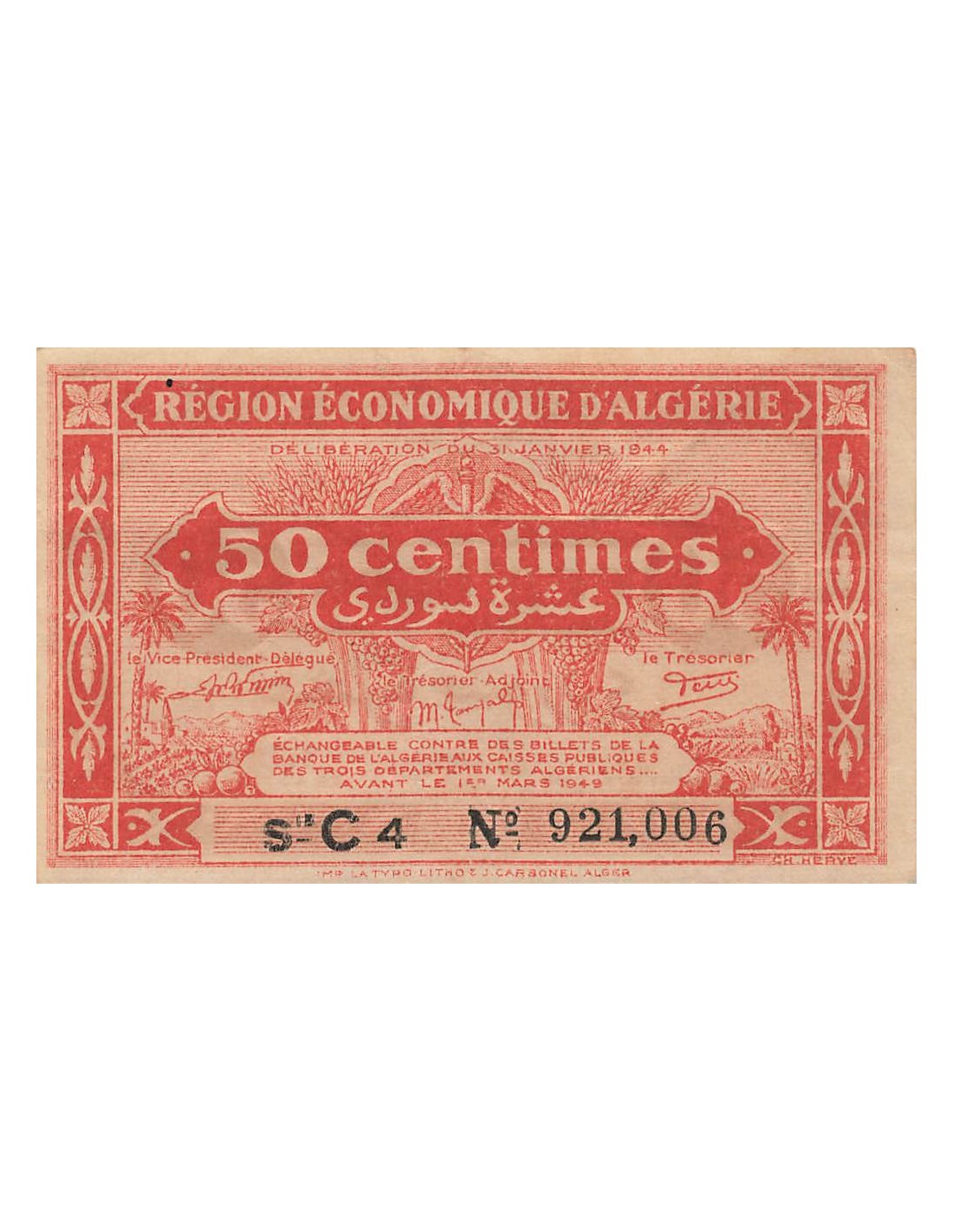 Vendu Afrique du Nord Algérie ALGERIE - 1 FRANC 1944 1er tirage SUFFREN sf_14273 5,00 € ALGERIE - 1 FRANC 1944 1er tirage View