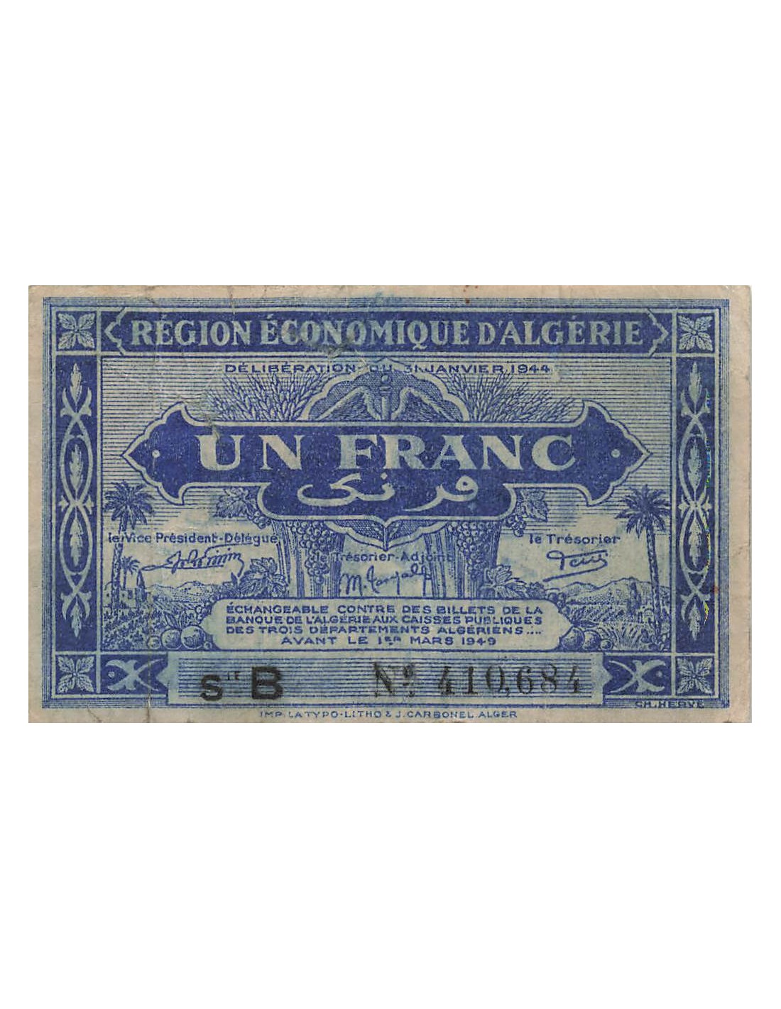 Algérie 1 Franc - 31-01-1944 - Série B - P.98a