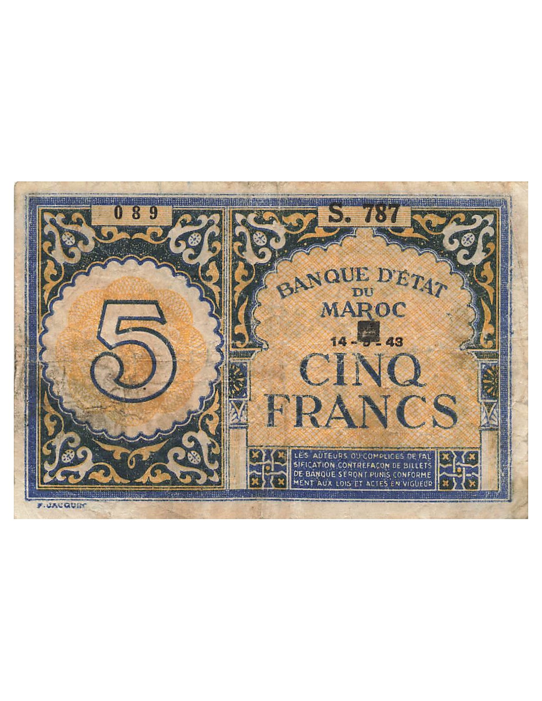 Maroc 5 francs 1943