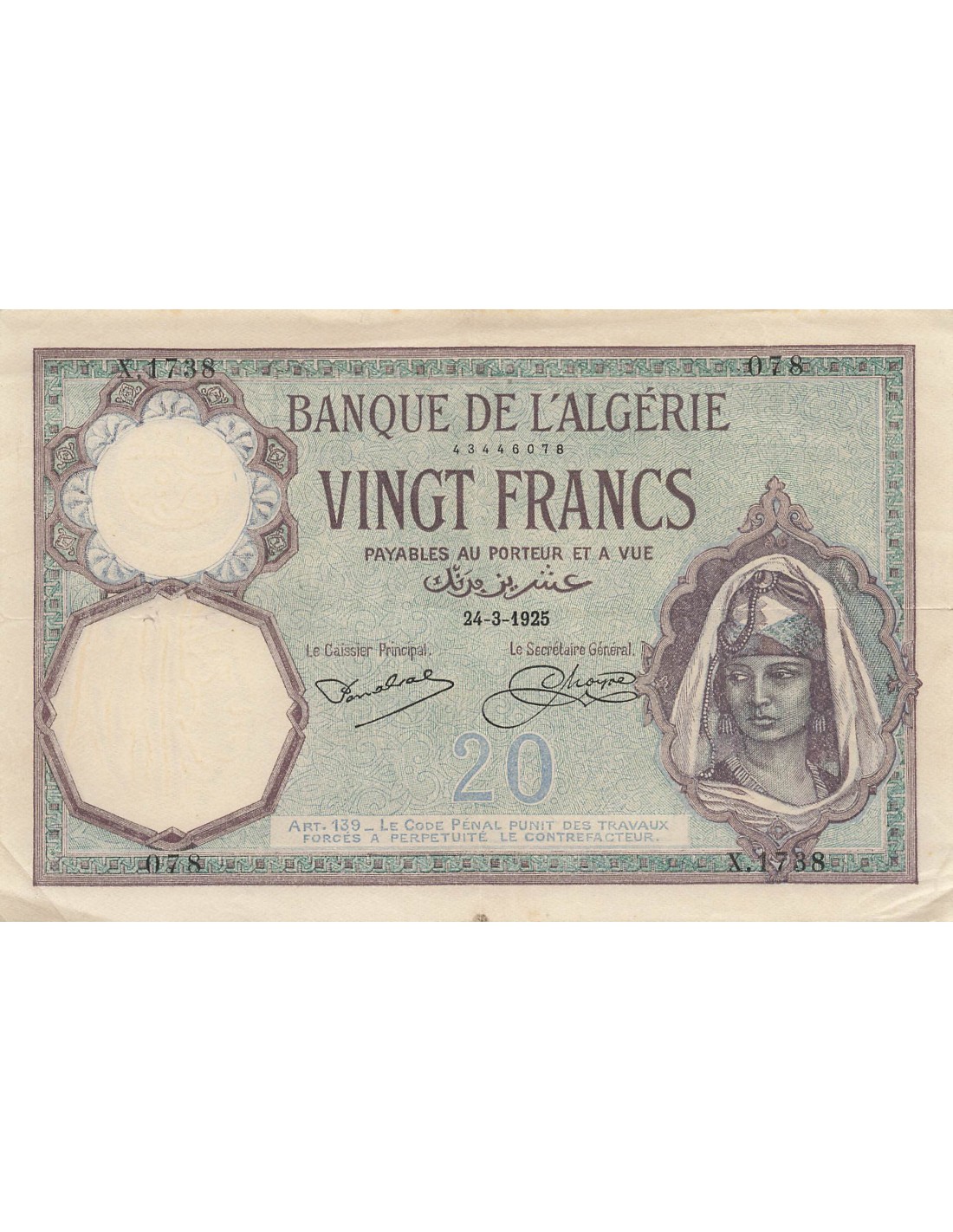 Vendu Afrique du Nord Algérie 50 Francs - Algérie - Vue d'Alger - 12-03-1924 SUFFREN SFB44 60,00 € View