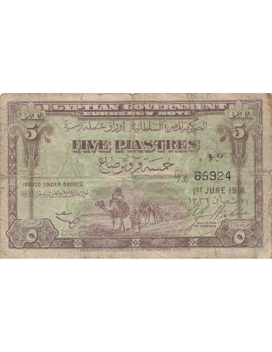 Egypte 5 Piastres - 01-06-1918 - P.162 5 piastres 1918
