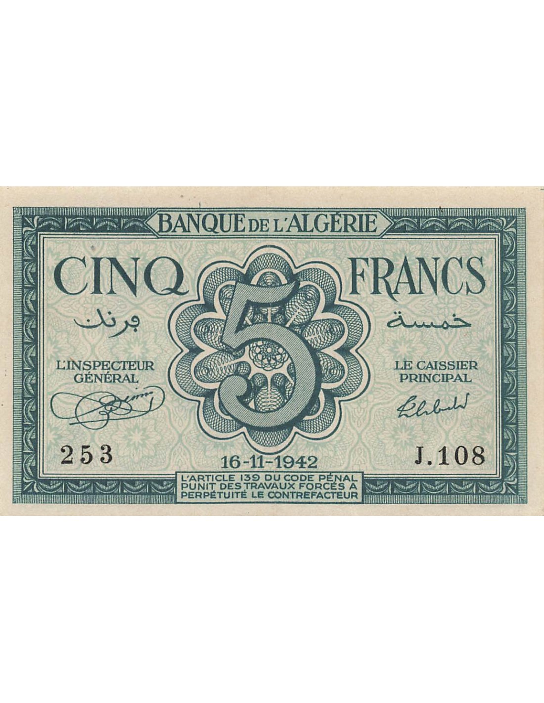 Vendu Afrique du Nord Algérie 5 Francs - Jeune Femme - 18-08-1941 - P.77b SUFFREN SFB733 20,00 € View