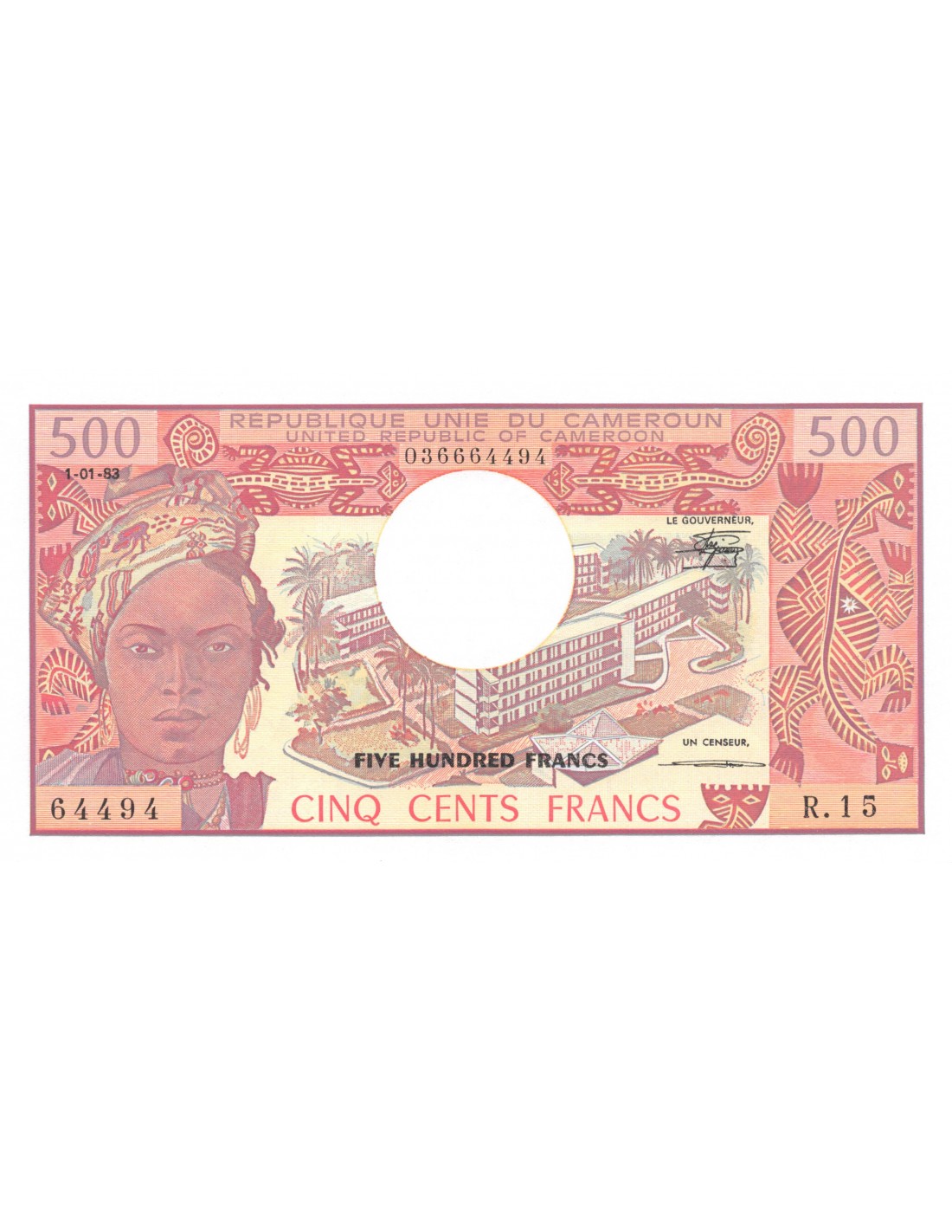 IREPUBLIQUE UNIE DU CAMEROUN - 500 FRANCS 01/01/1983