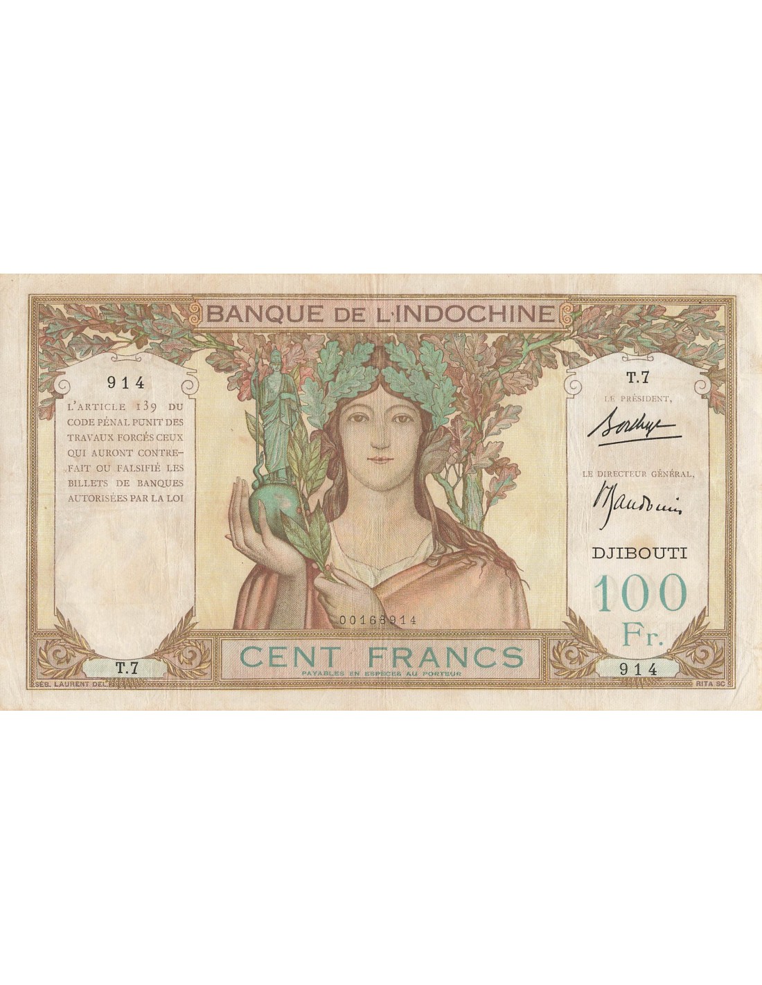 Vendu Afrique sub-saharienne BCEAO AFRIQUE EQUATORIALE FRANCAISE MARIANNE - 10 FRANCS 1941 SUFFREN sf_19962 15,00 € épinglages, plis, salissures, aspect froissé View