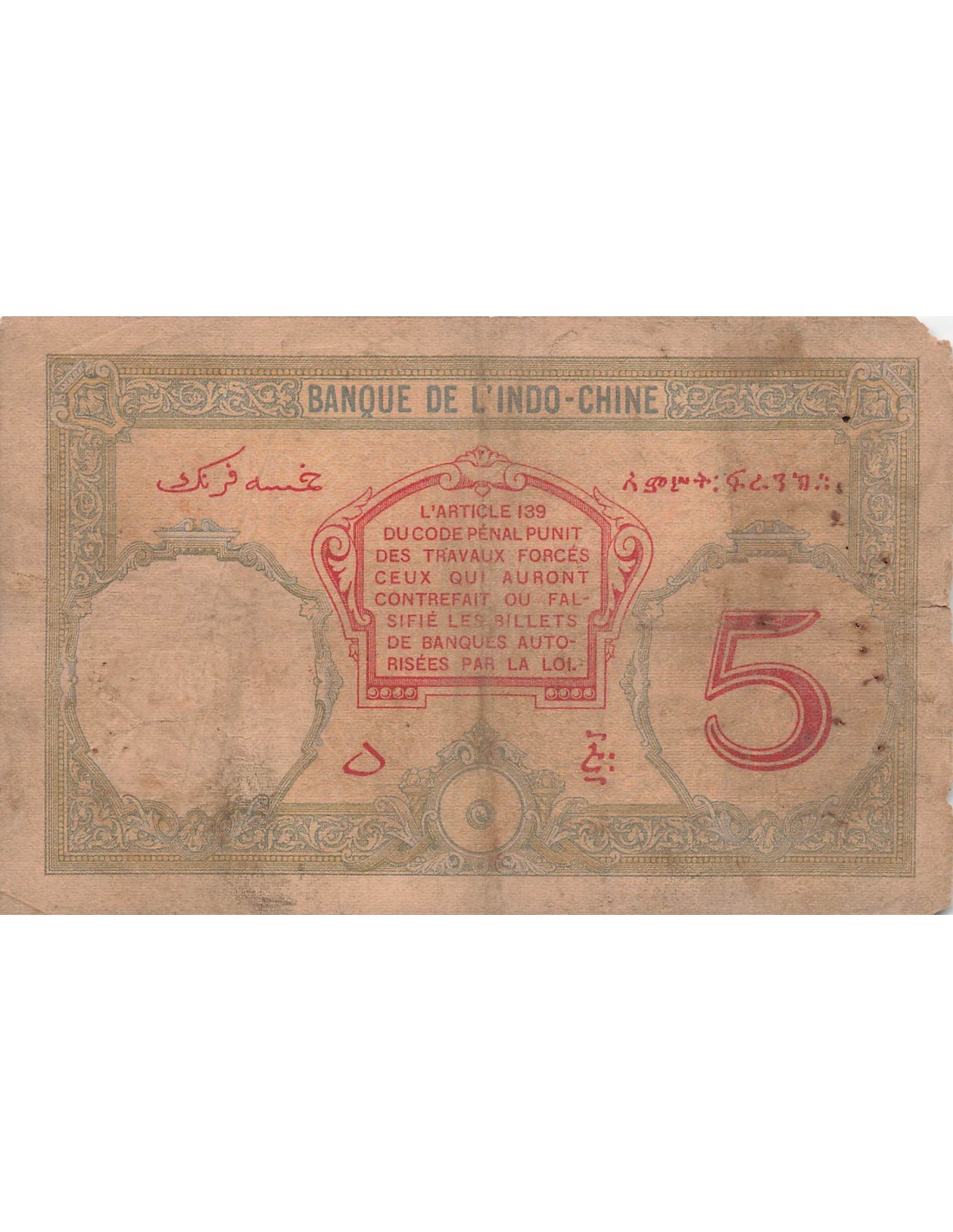 Djibouti 5 Francs - ND (1928-1938) - P.6 5 francs 1928