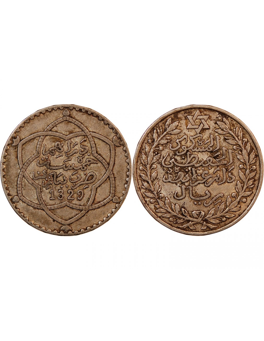 Maroc Maroc, Abddelhafid - 5 Dirhams Argent 1329 (1911)
