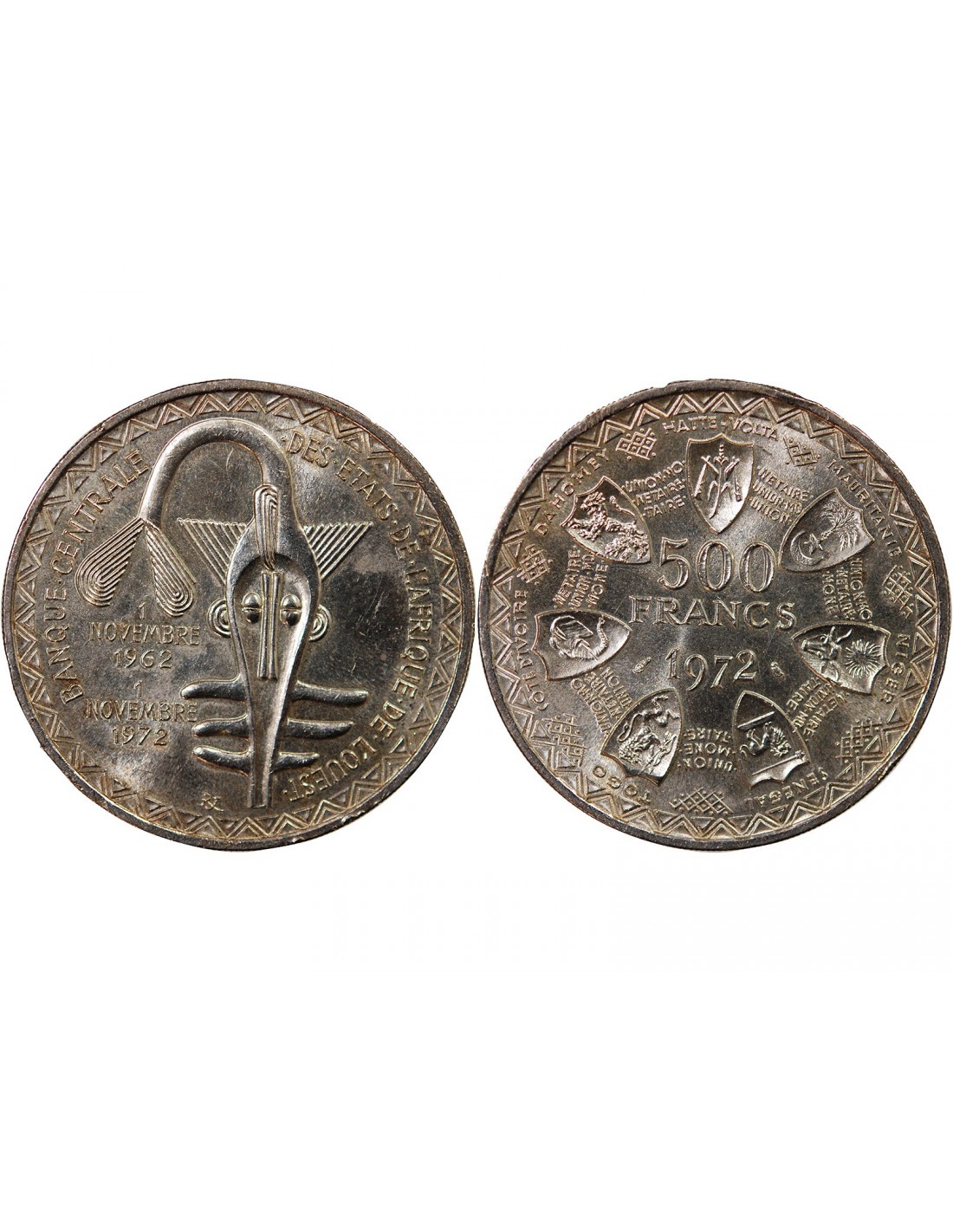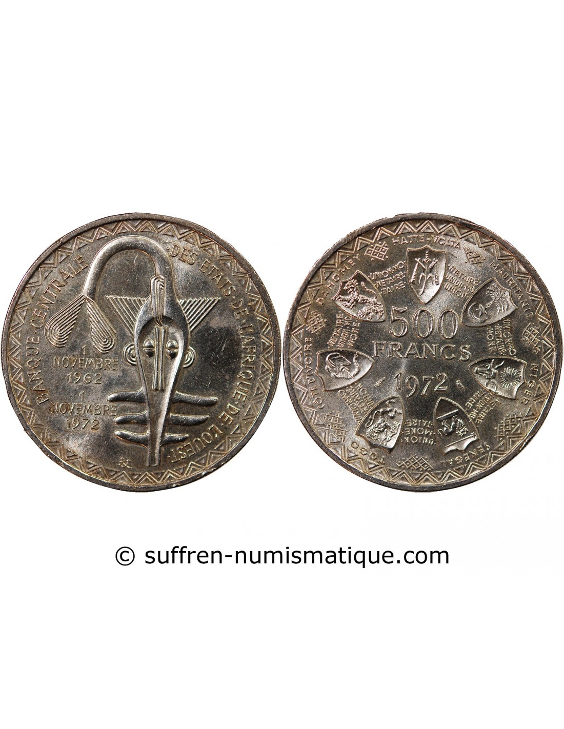 ETATS DE L'AFRIQUE DE L'OUEST, BCEAO - 500 FRANCS ARGENT 1972