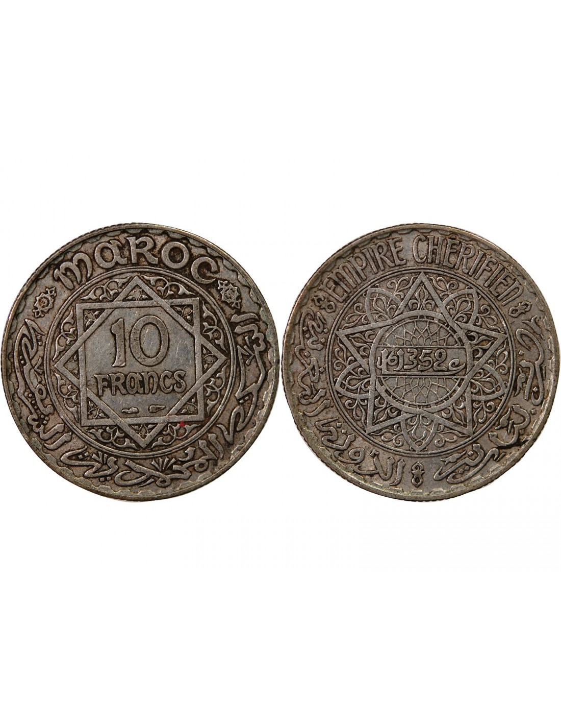 En stock Afrique Maroc Protectorat Fr. - 10 Francs Argent - 1352 AH (1934) Paris SUFFREN SFP5383 12,00 € Ajouter au panier