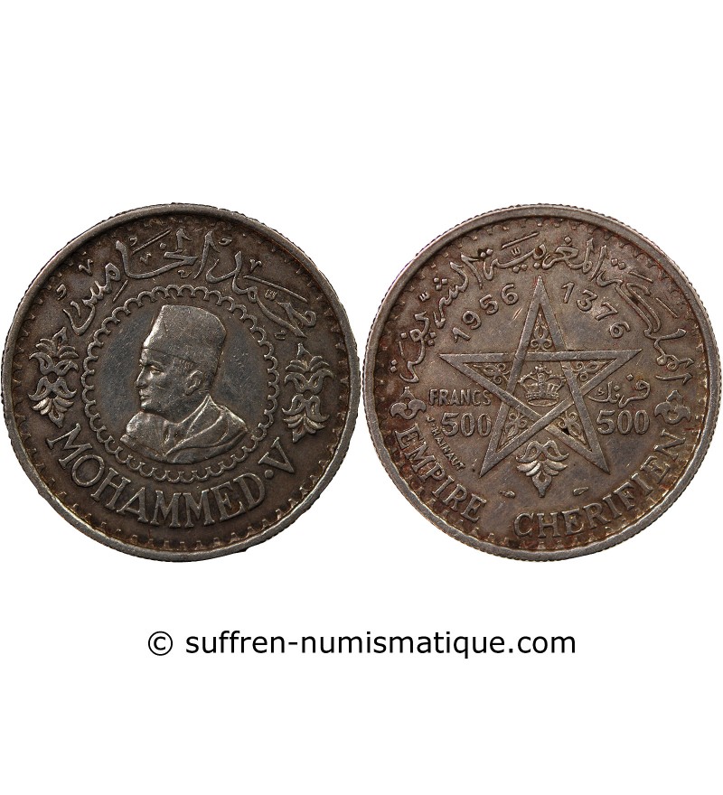 Vendu Afrique MAROC, MOHAMMED V - 500 FRANCS ARGENT 1376 (1956) A1975s 24,00 € MAROC, MOHAMMED V - 500 FRANCS ARGENT 1376 (1956) View