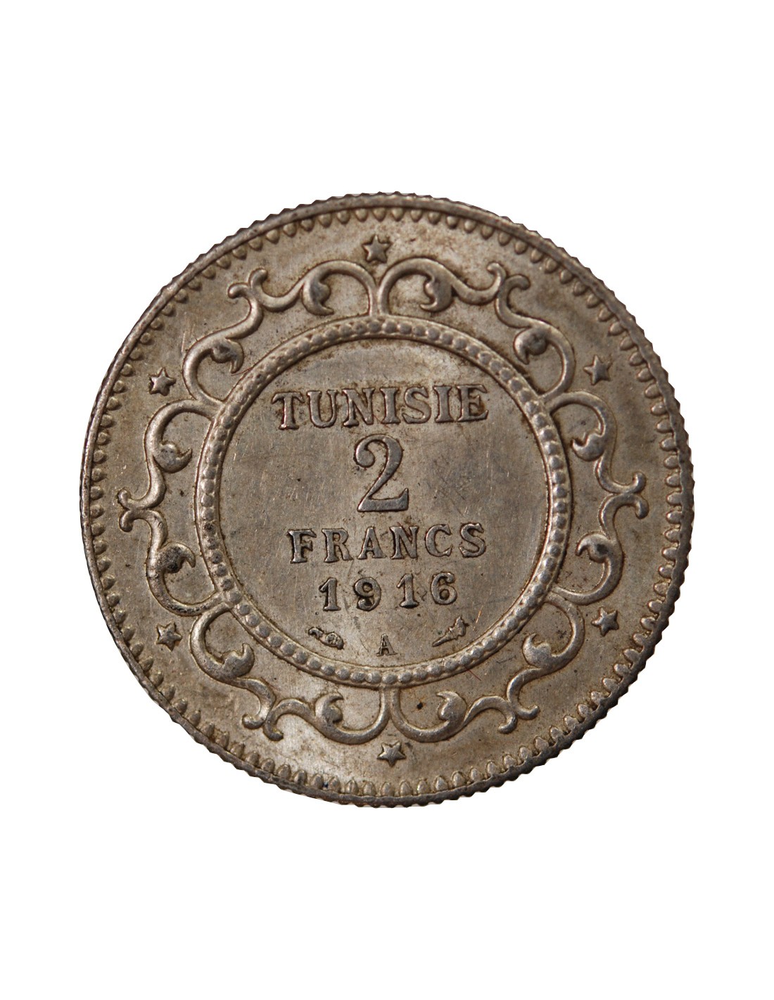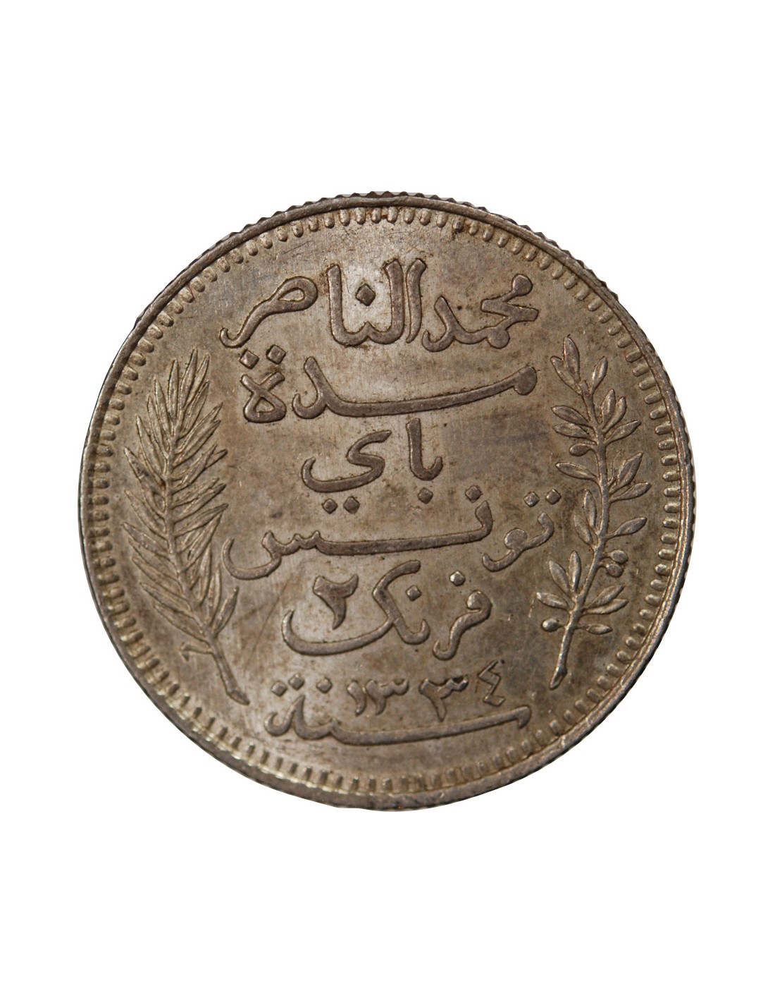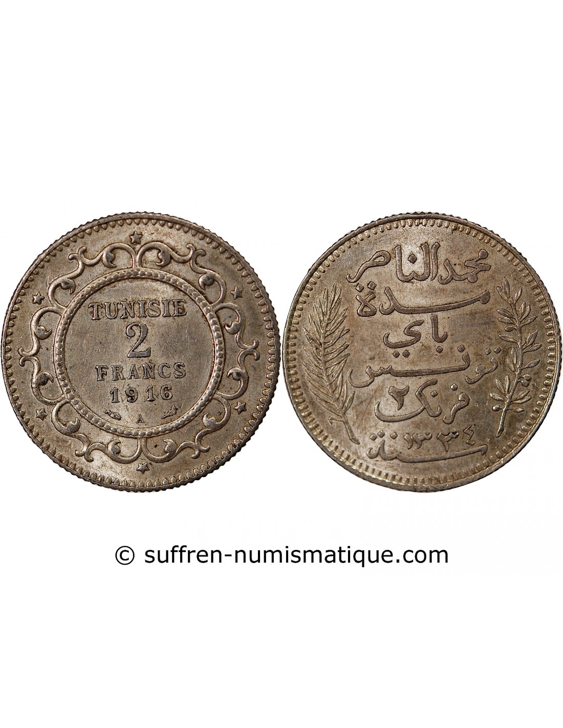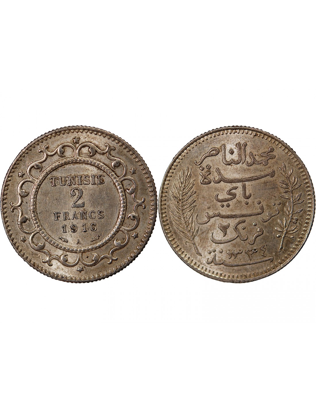 Tunisie Protectorat, Muhammad Al-Nasir - 2 Francs Argent 1916 A Paris