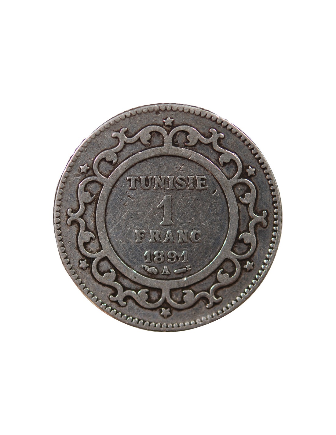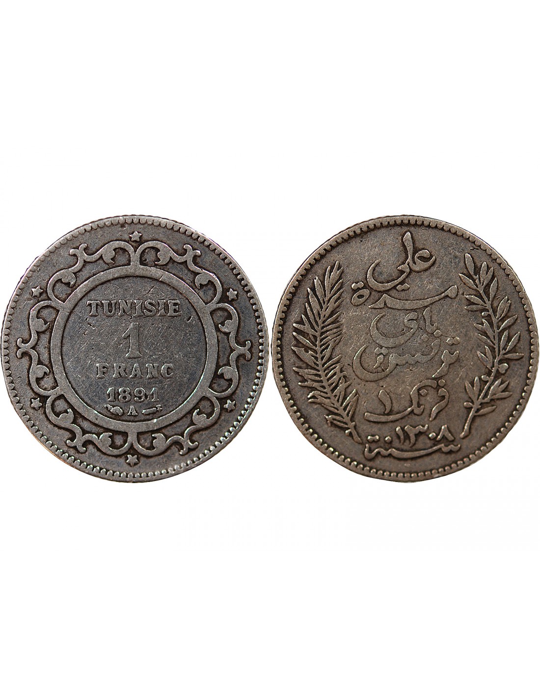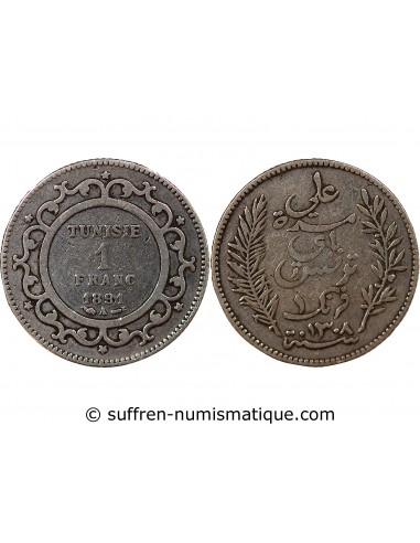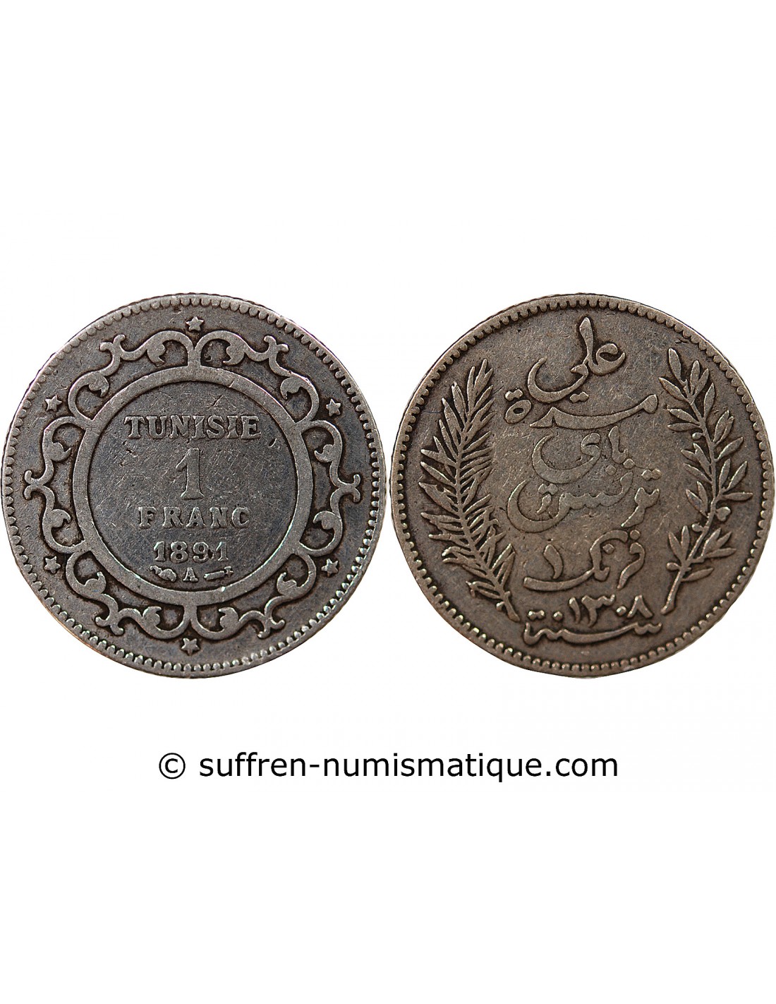 PROTECTORAT FRANCAIS DE TUNISIE, ALI - 1 FRANC ARGENT 1891 A PARIS