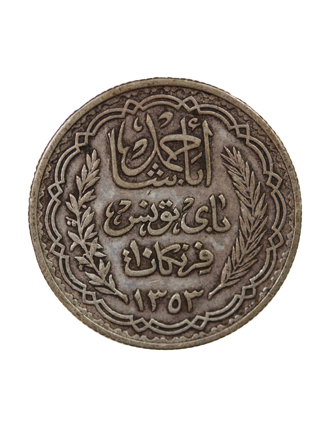 PROTECTORAT FRANCAIS DE TUNISIE, AHMAD PASHA - 10 FRANCS ARGENT 1353 (1935)