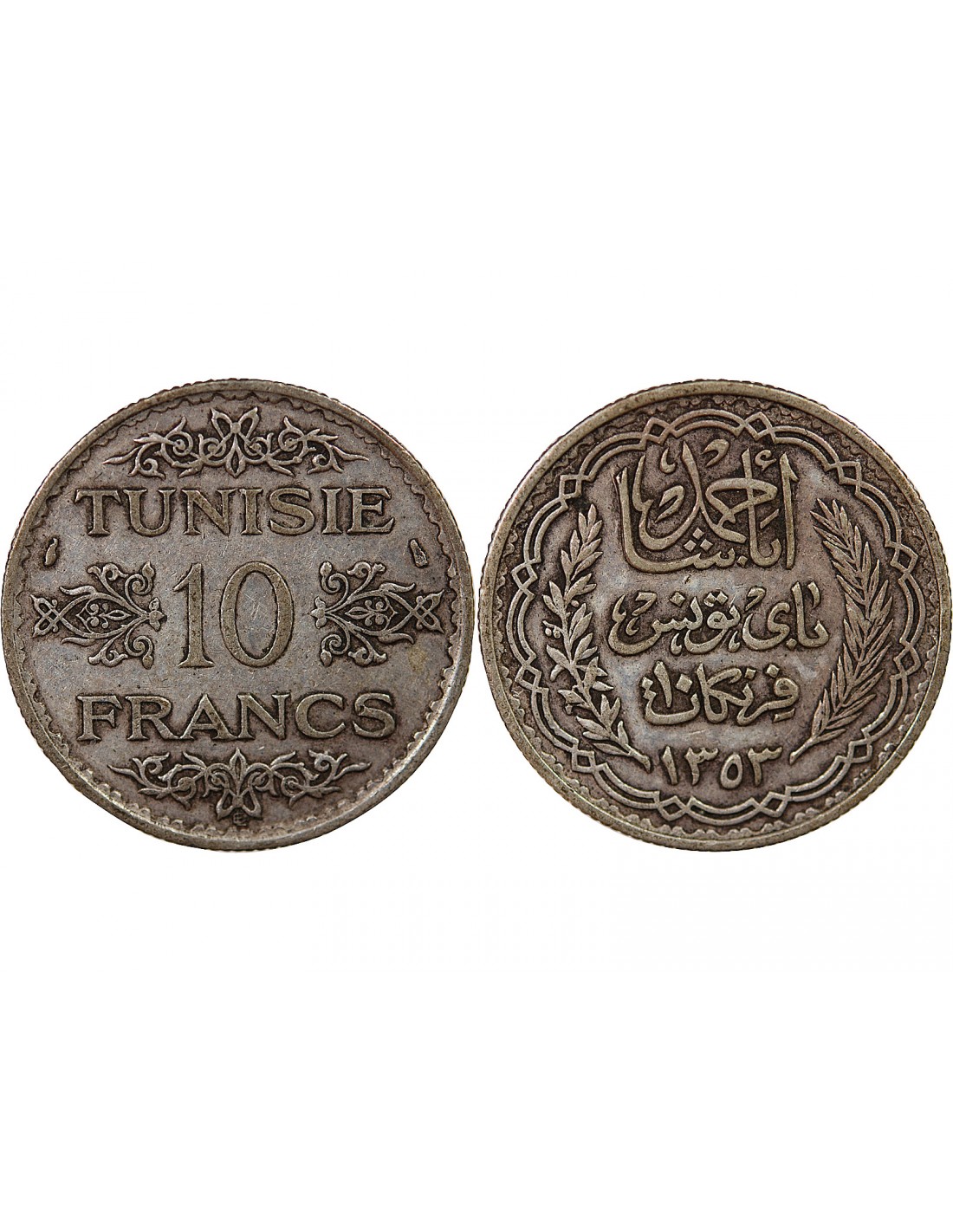 Tunisie Protectorat Français, Ahmad Pasha - 10 Francs Argent 1353 (1935)