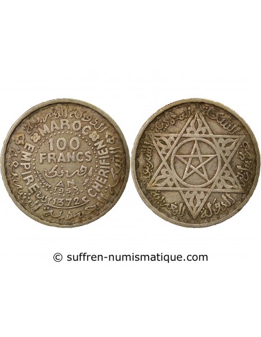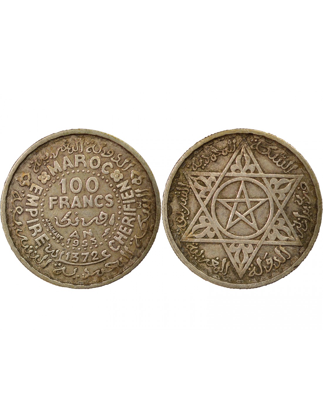 PROTECTORAT FRANCAIS DU MAROC, MOHAMMED V - 100 FRANCS ARGENT 1372/1953