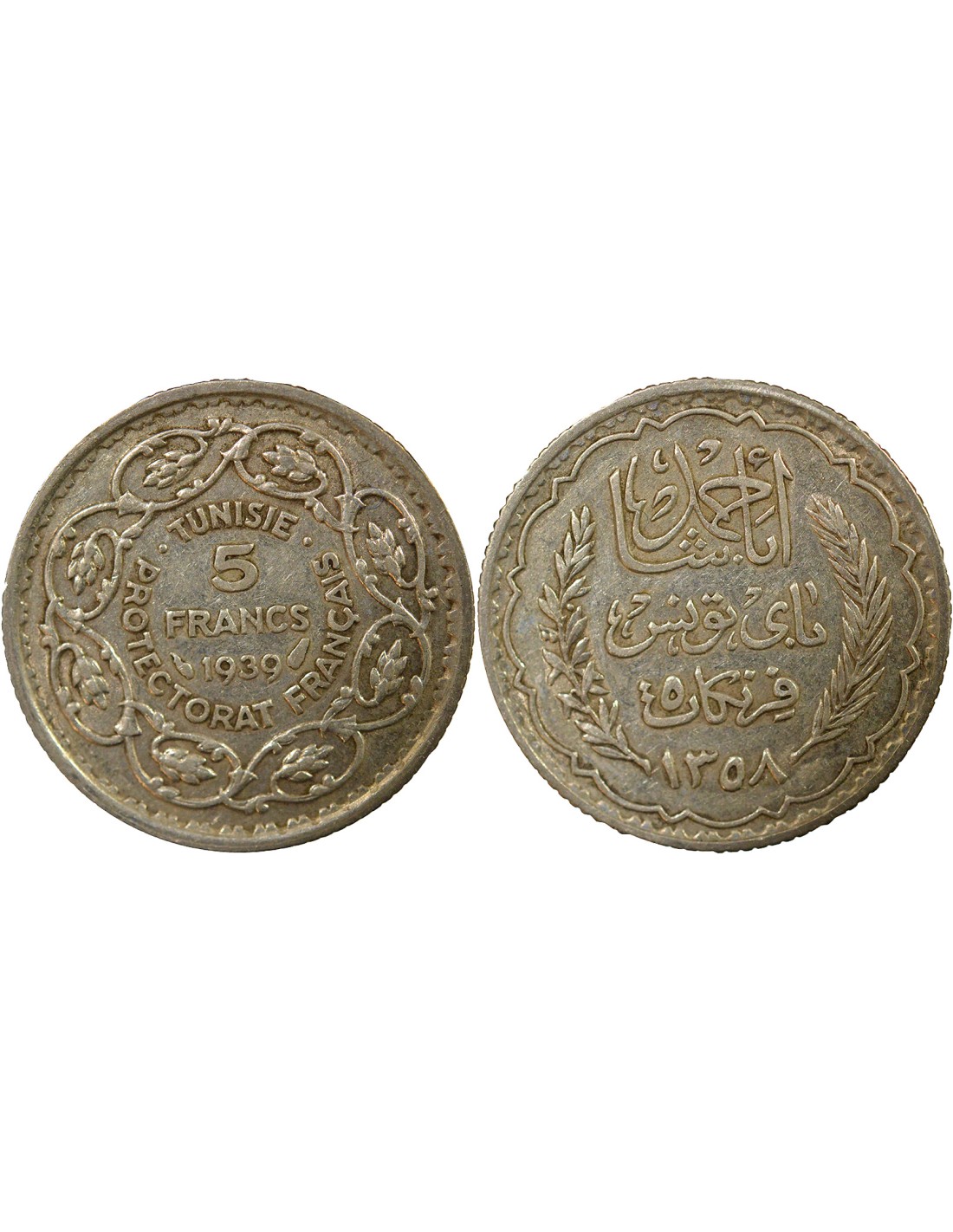Tunisie Protectorat, Ahmad II - 5 Francs Argent - 1939 Paris