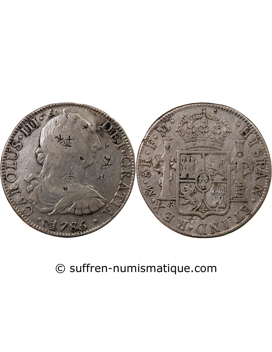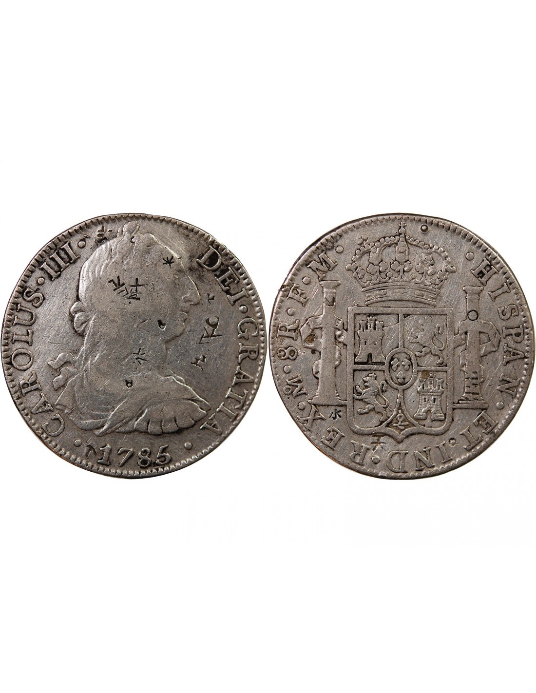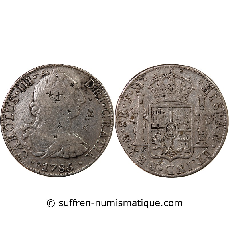 Mexique MEXIQUE, CHARLES III - 8 REALES ARGENT 1785 FM - Contremarques