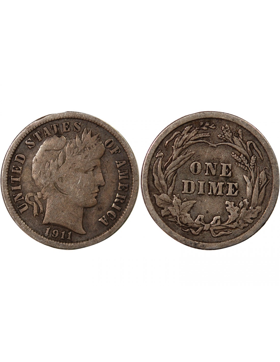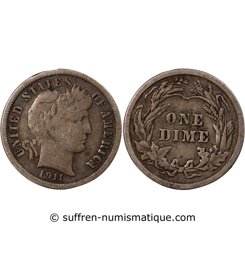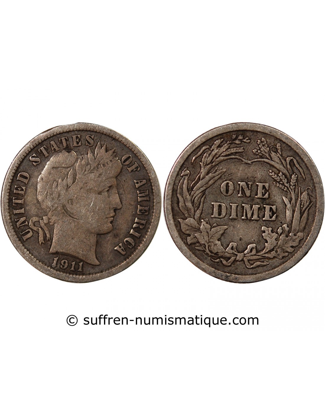 USA - 10 CENTS ARGENT "Barber Dime" 1911 PHILADELPHIE