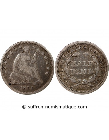 ETATS UNIS - SEATED LIBERTY HALF DIME ARGENT 1858 PHILADELPHIE