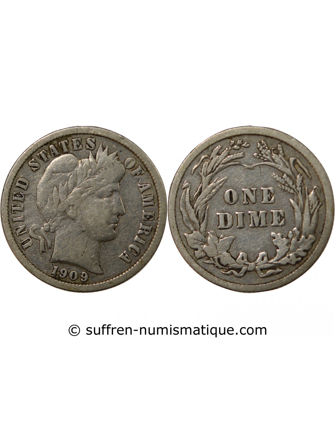ETATS UNIS - BARBER DIME ARGENT 1909 PHILADELPHIE