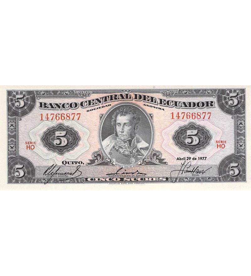Vendu Amérique du Sud Equateur EQUATEUR ANTONIO JOSE DE SUCRE - 5 SUCRES 1988 - P.NEUF SUFFREN sf_17671 3,00 € EQUATEUR, ANTONIO JOSE DE SUCRE - 5 SUCRES 1988 - P.NEUF View
