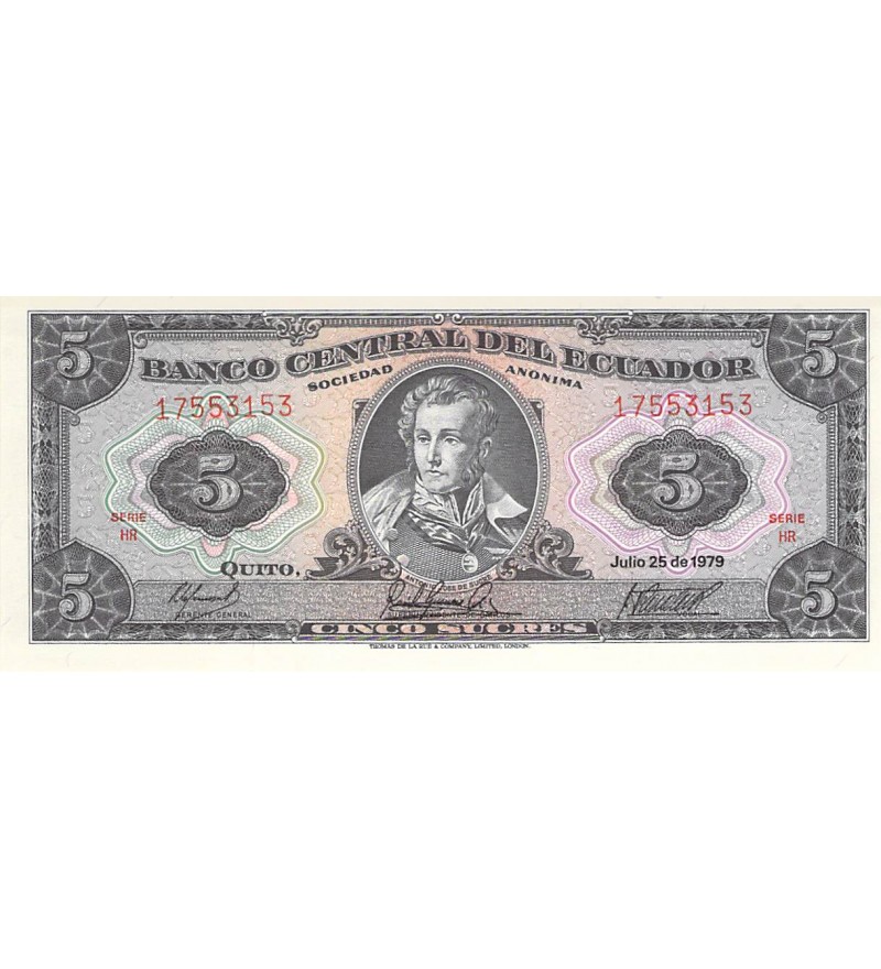 Vendu Amérique du Sud Equateur Equateur - 5 Sucres 29/04/1977 - Neuf SUFFREN sf_14870 10,00 € Equateur - 5 Sucres 29/04/1977 - Neuf View