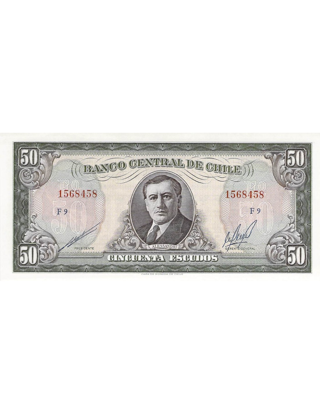 CHILI, ARTURO ALESSANDRI - 50 ESCUDOS 1973 / 1985 - NEUF