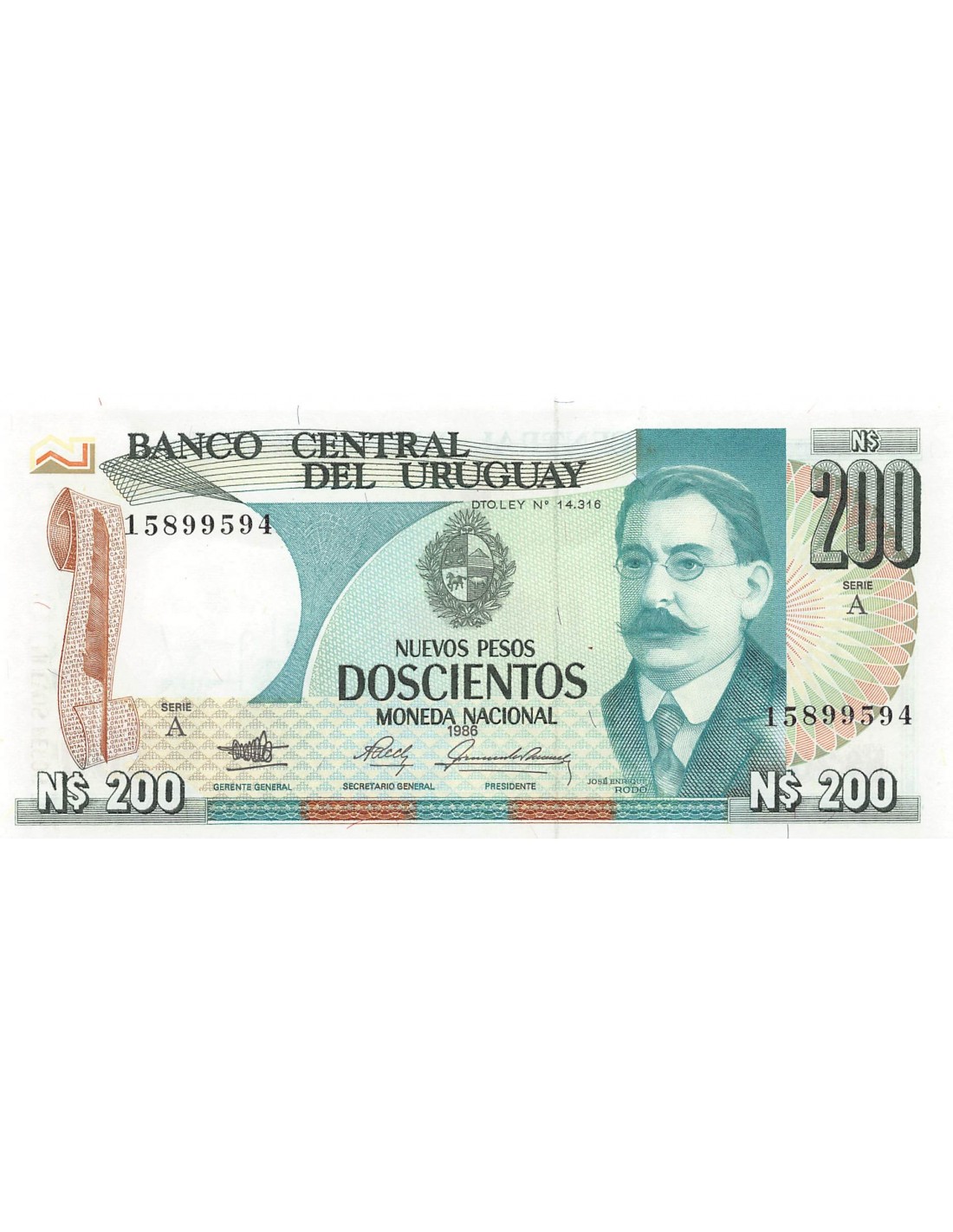 URUGUAY, JOSE ENRIQUE RODO - 200 NUEVOS PESOS 1986 - P.NEUF