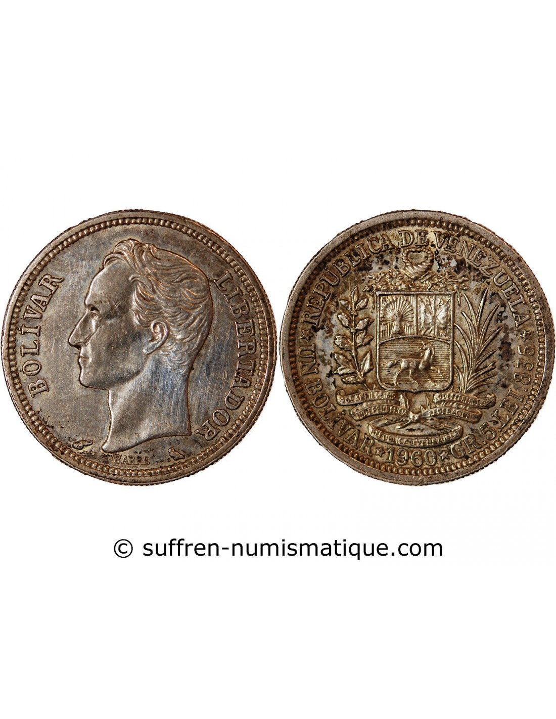 VENEZUELA, SIMON BOLIVAR - 1 BOLIVAR ARGENT 1960