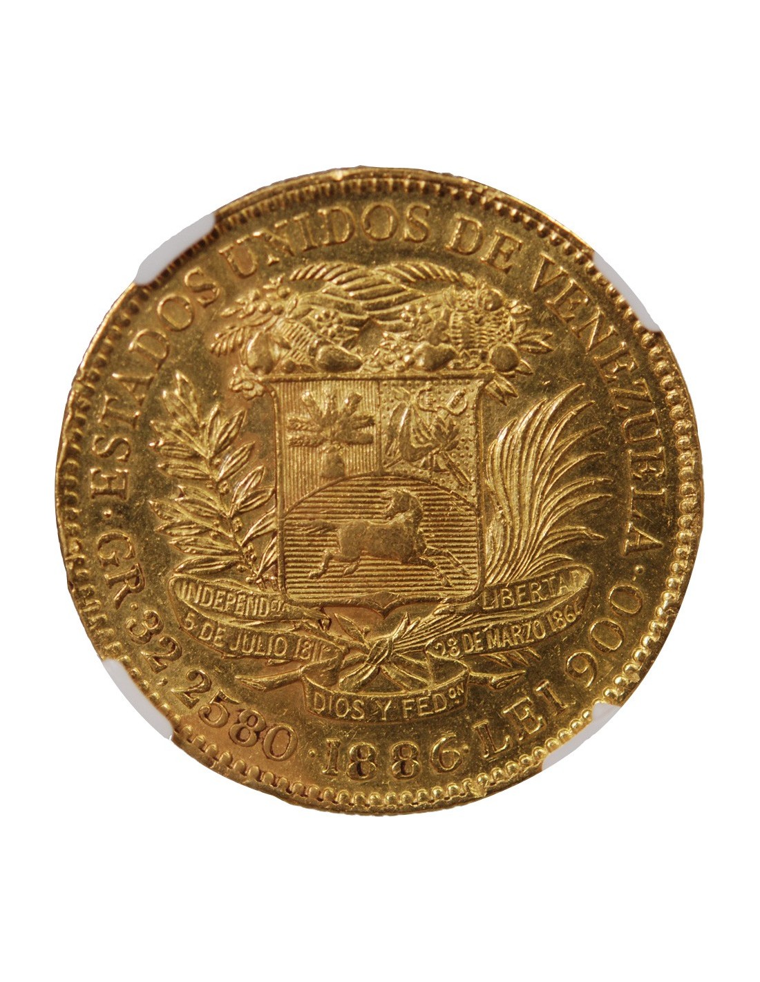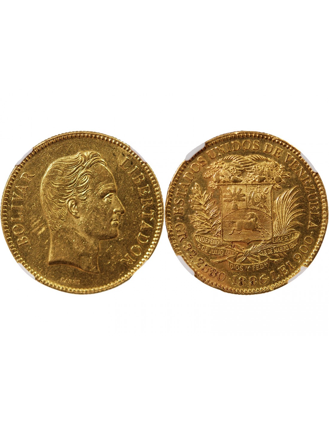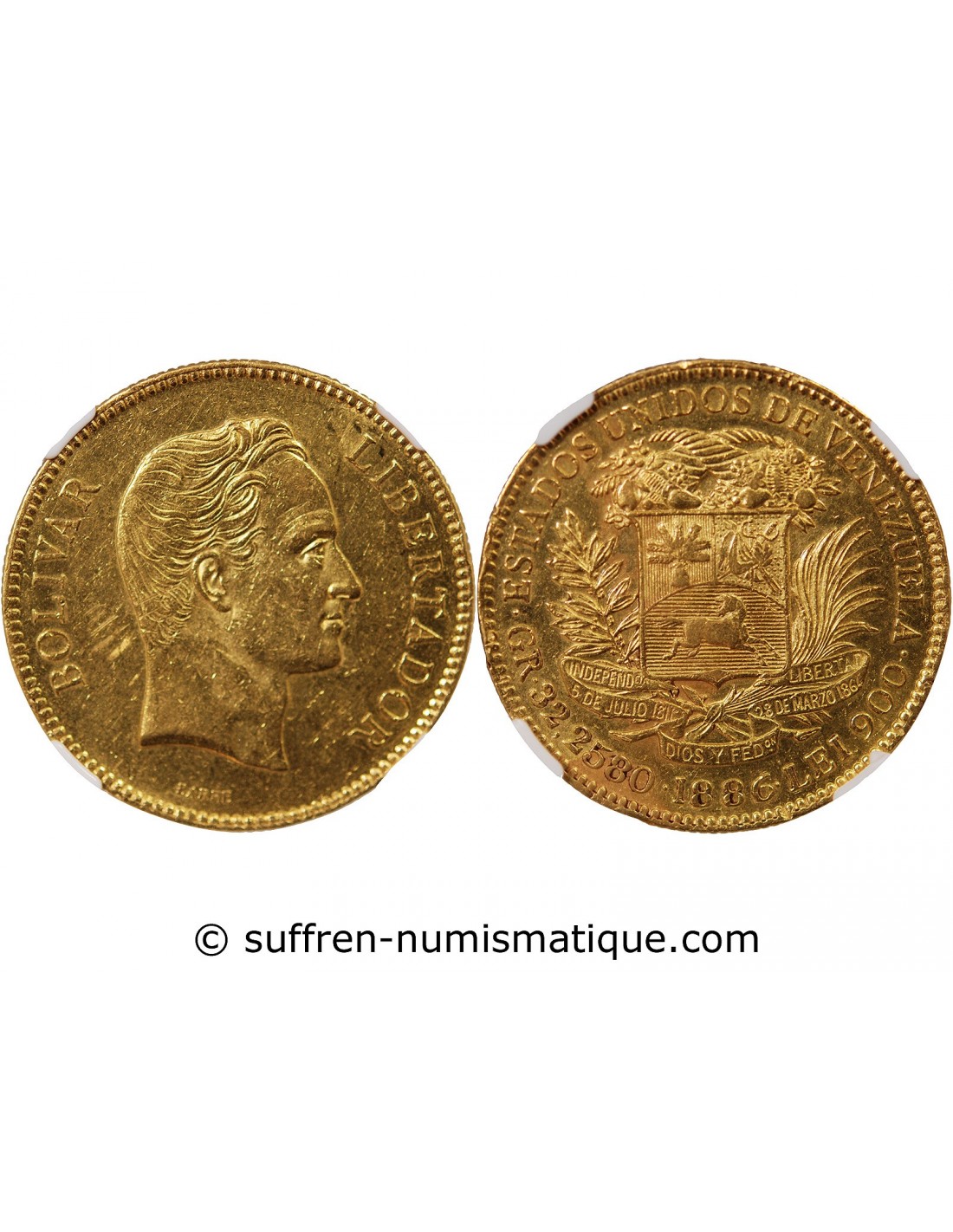 VENEZUELA, SIMON BOLIVAR - 100 BOLIVARES OR 1886 - NGC AU55