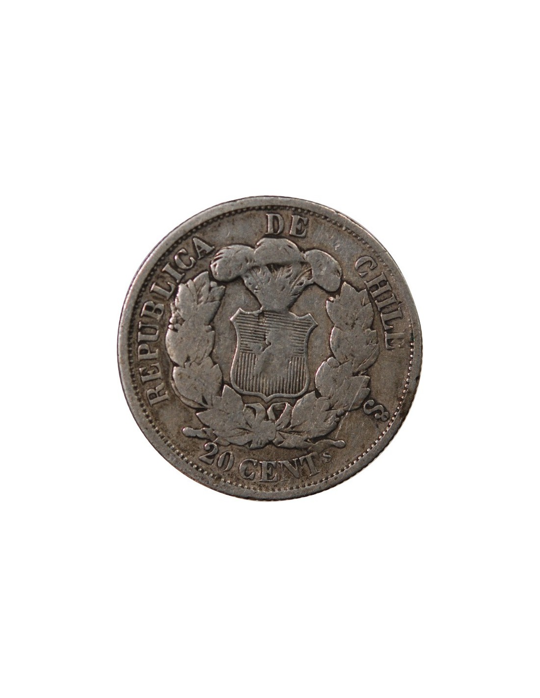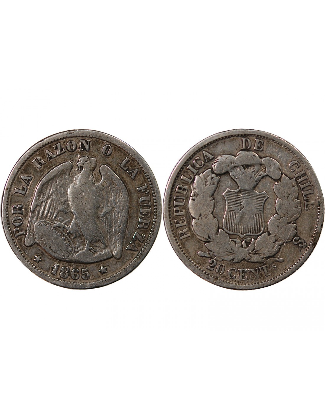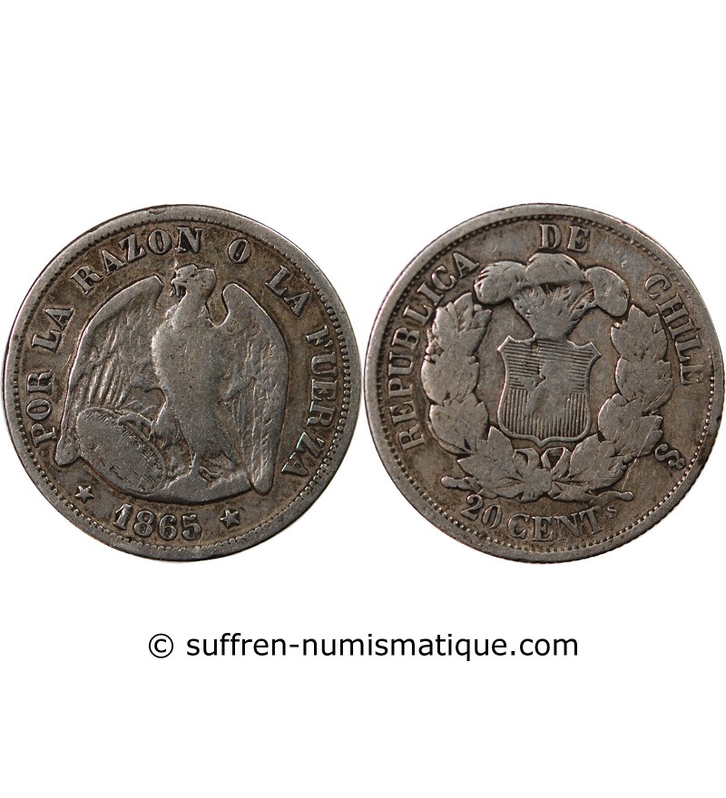 CHILI - 20 CENTAVOS ARGENT 1865 So