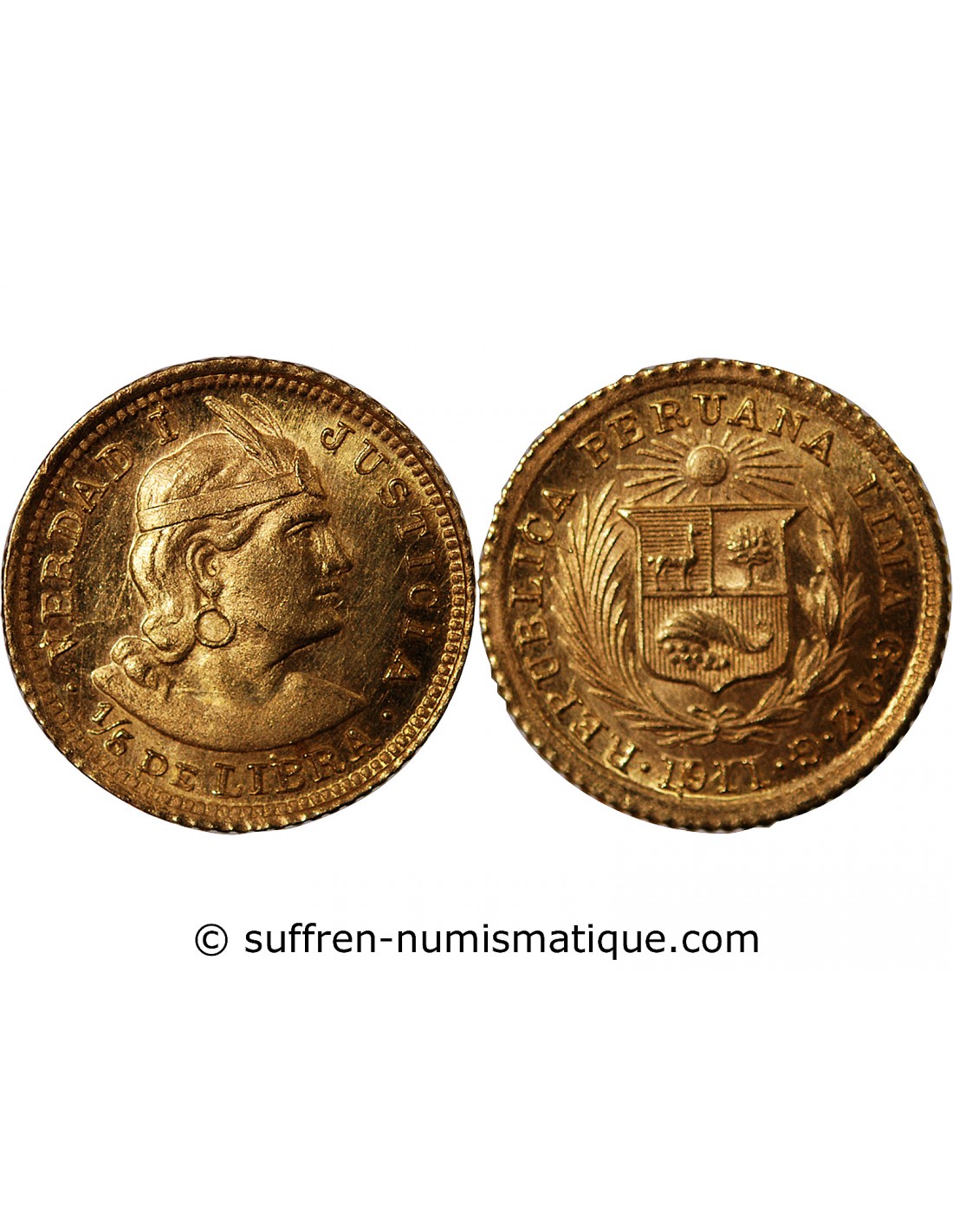 PEROU - 1/5 LIBRA OR 1911 LIMA