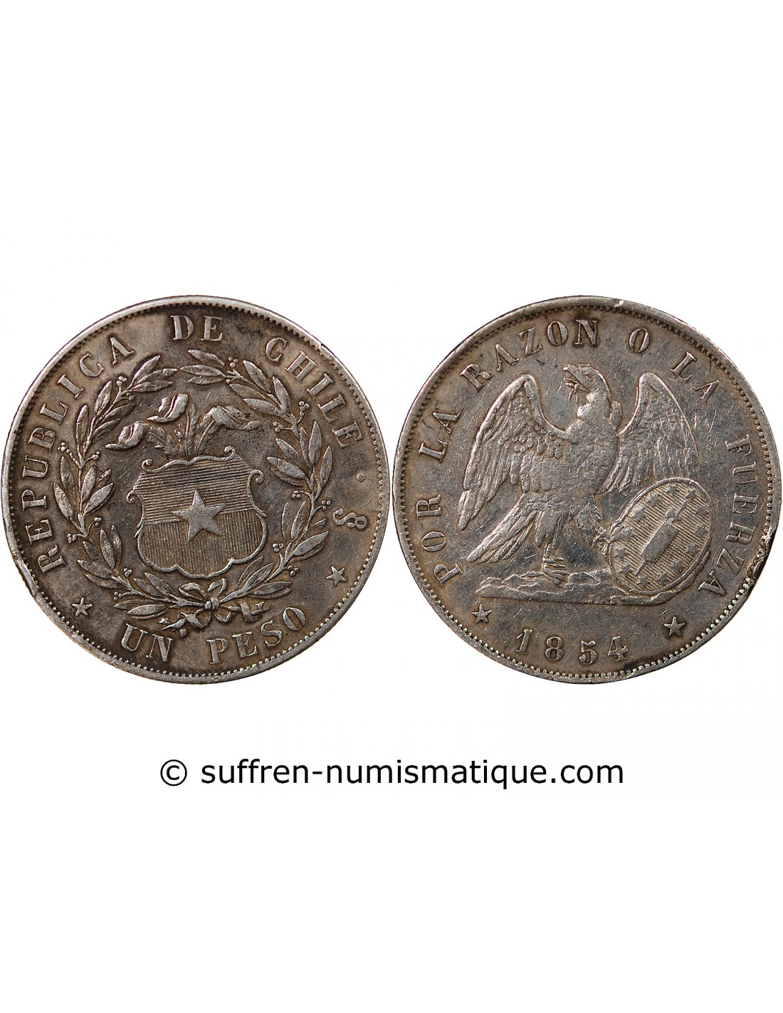 CHILI - 1 PESO ARGENT - 1854 So SANTIAGO