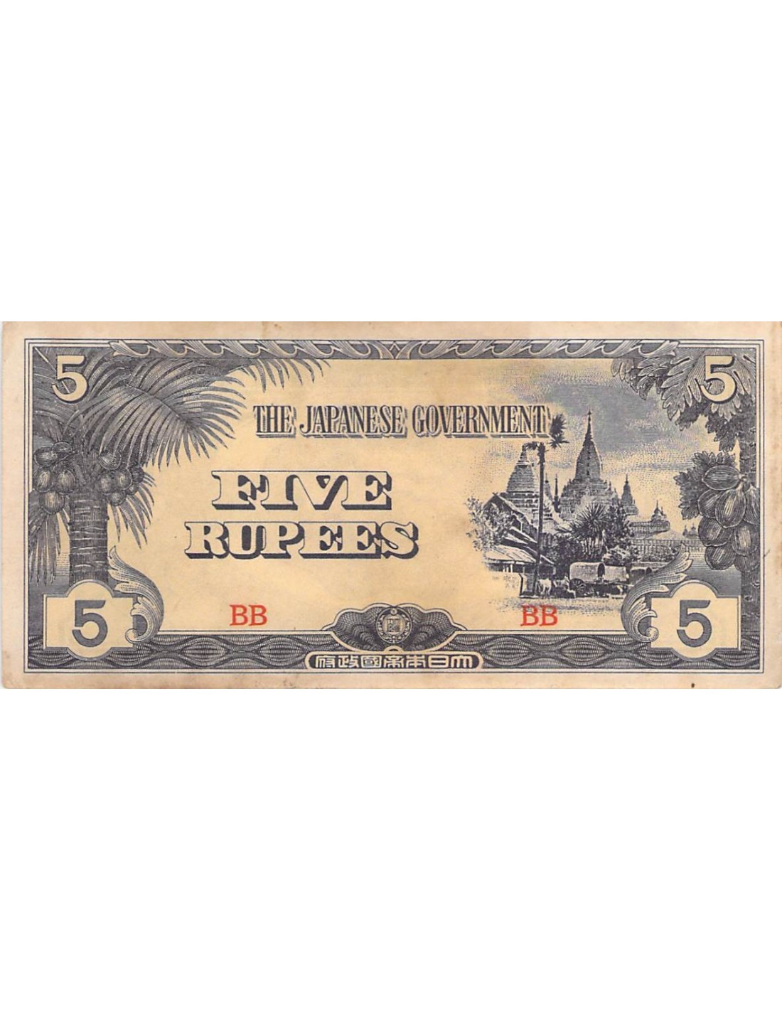 BIRMANIE, OCCUPATION JAPONAISE - 5 RUPEES 1942 / 1944 - SUP