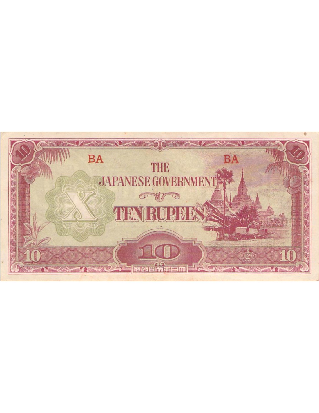 BIRMANIE, OCCUPATION JAPONAISE - 10 RUPEES 1942 / 1944 - SPL