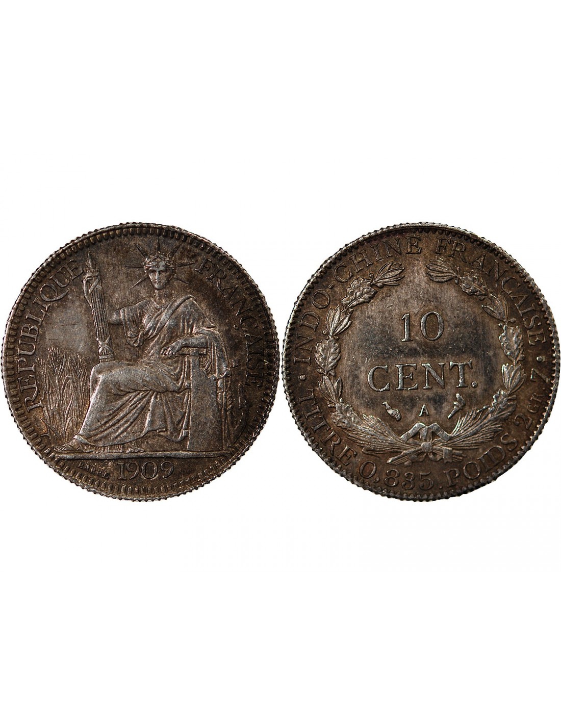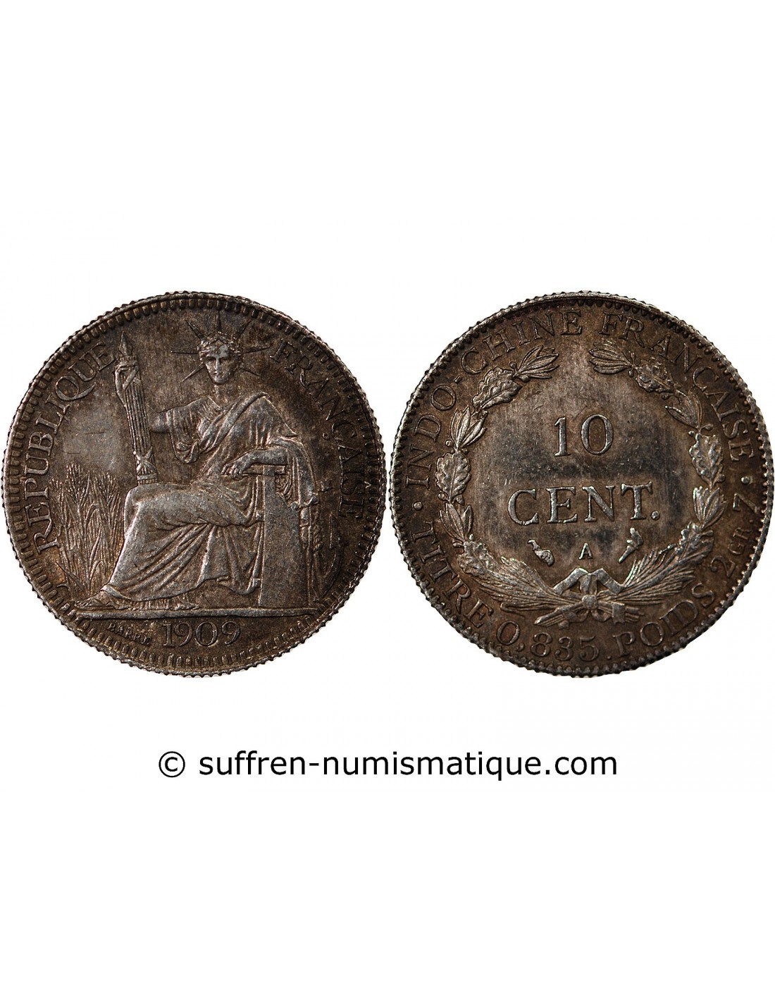 INDOCHINE FRANCAISE - 10 CENTIMES ARGENT 1909 A PARIS