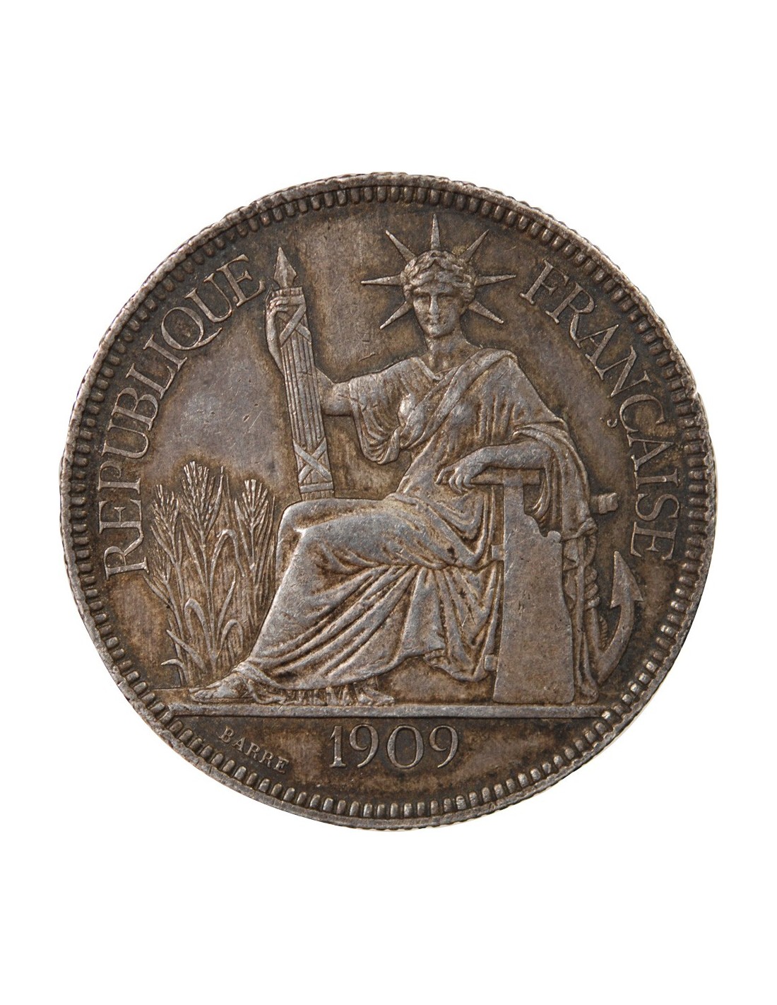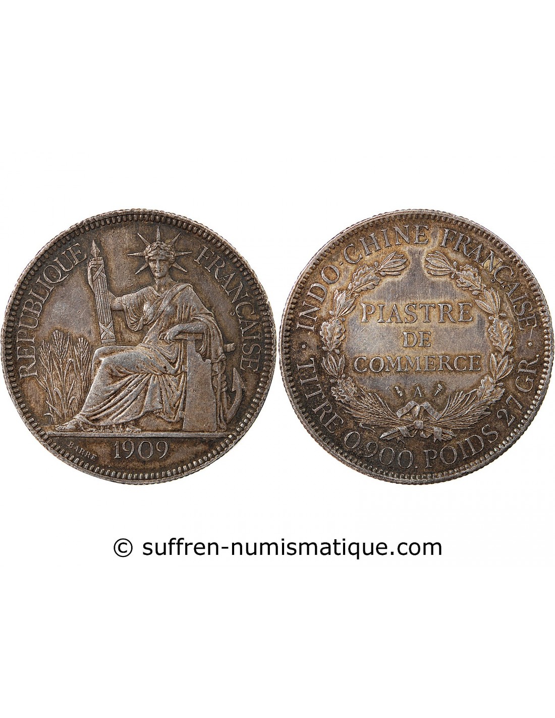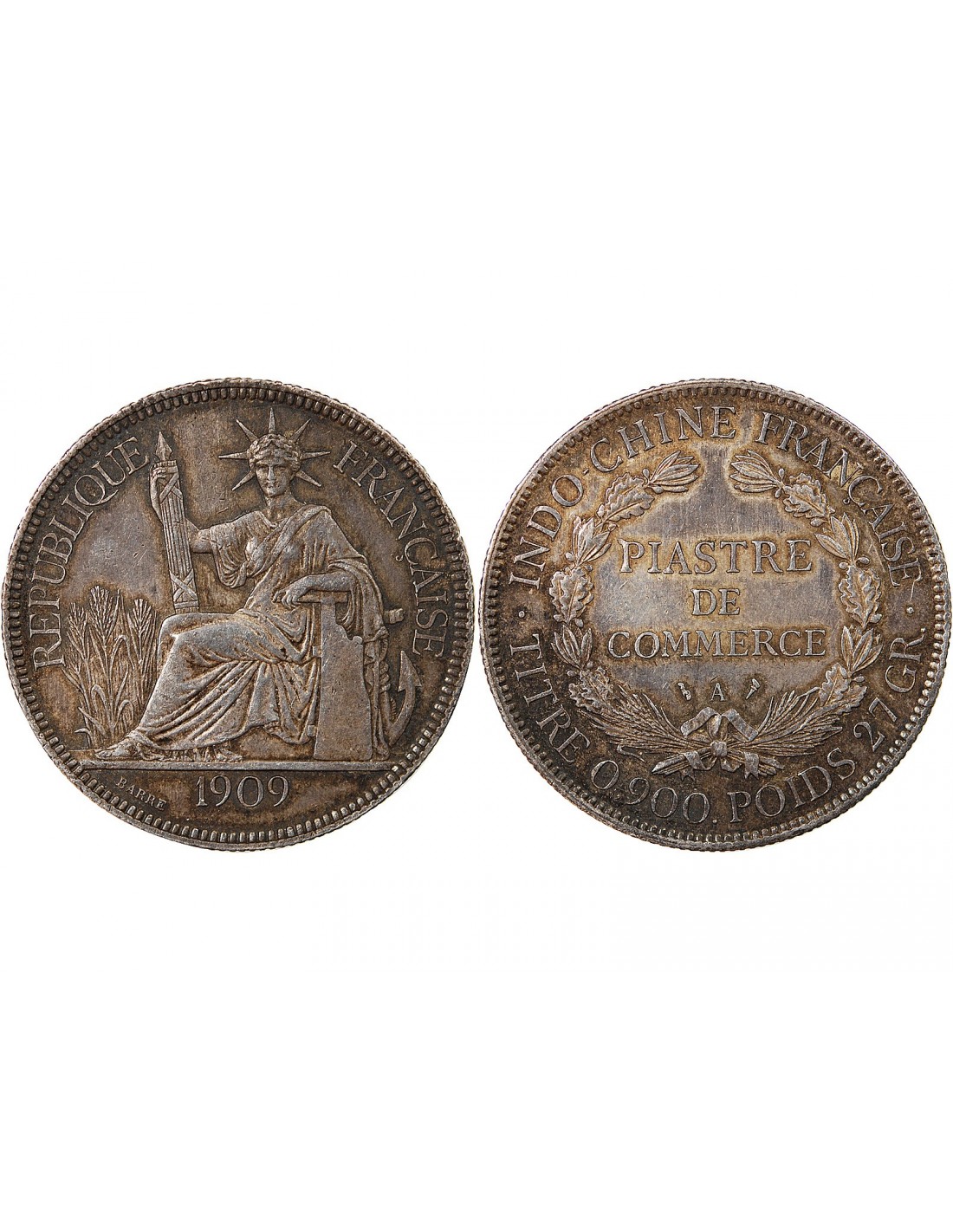 INDOCHINE FRANCAISE - PIASTRE DE COMMERCE ARGENT 1909 A PARIS