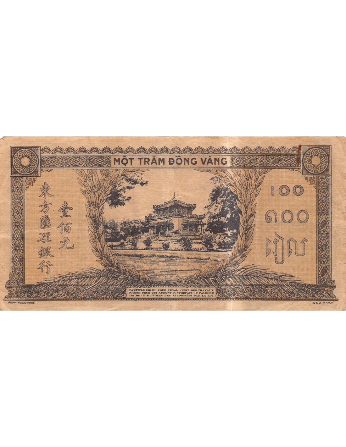 INDOCHINE FRANCAISE - 100 PIASTRES 1942 / 1945