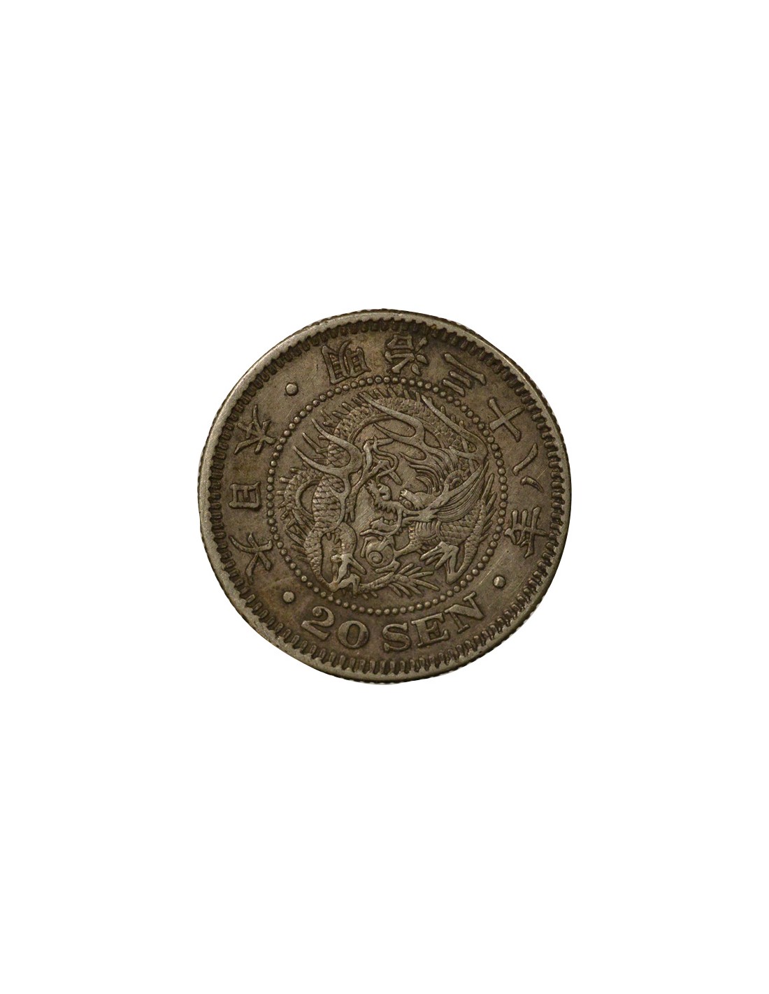 Japon Meiji - 20 Sen Argent, Dragon - An 38 (1905)
