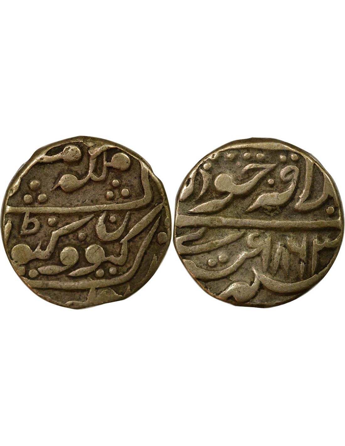 Cette pièce est une roupie en argent frappée à Jodhpur, en Inde, au nom de la reine Victoria. La pièce a été émise en 1863, mais ce type a été frappé jusqu'en 1900. Il s'agit d'un type immobilisé, ce qui signifie que même après 1863, la date sur la pièce est restée inchangée.