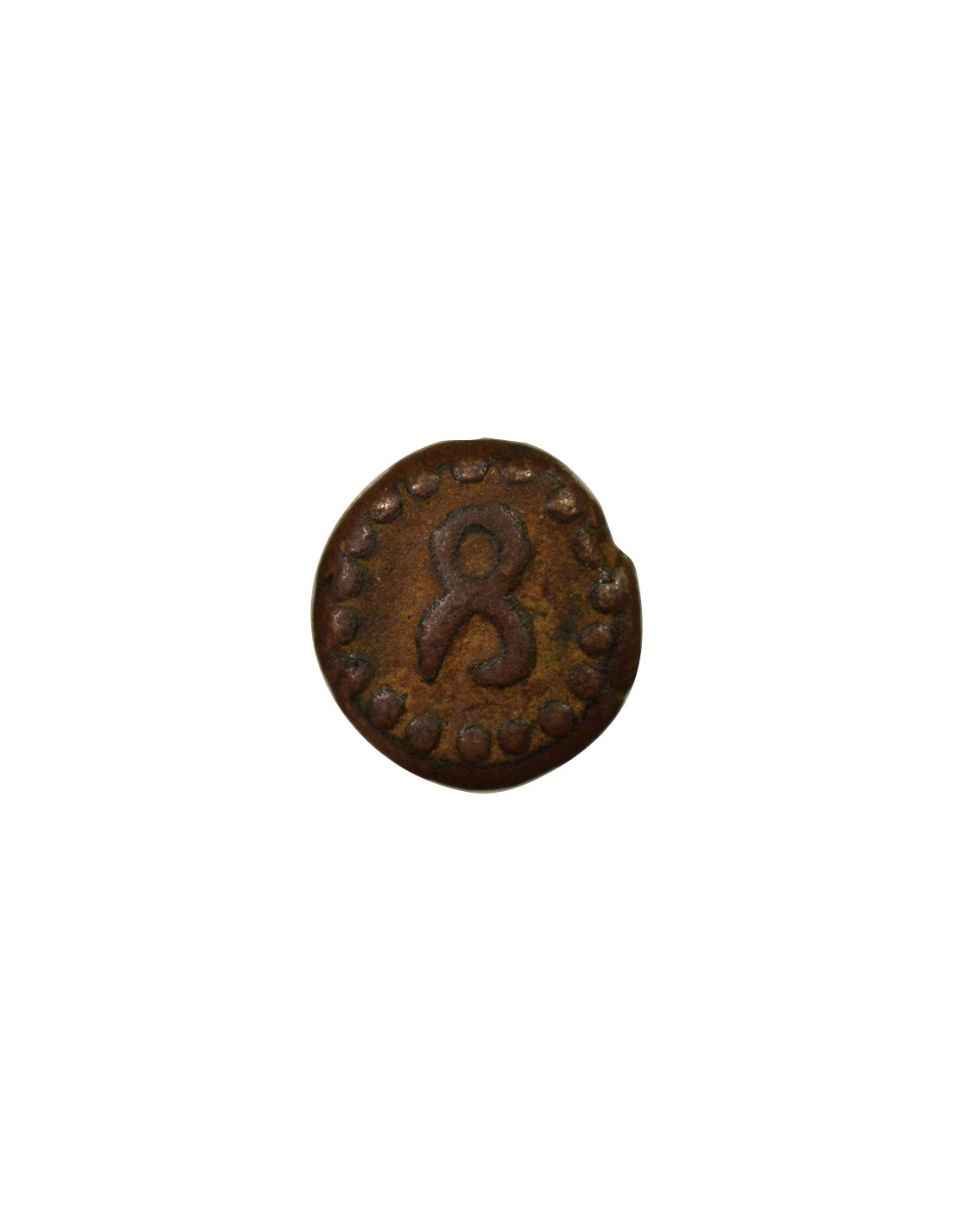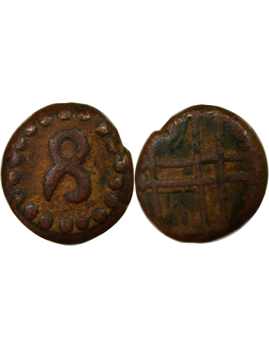 Cette pièce de monnaie est un demi Kasu, une subdivision monétaire, frappée dans le royaume de Mysore, en Inde. Elle est associée au règne de Chikka Devaraja et date de l'an 4 de son règne, correspondant à l'année 1677 de notre ère.