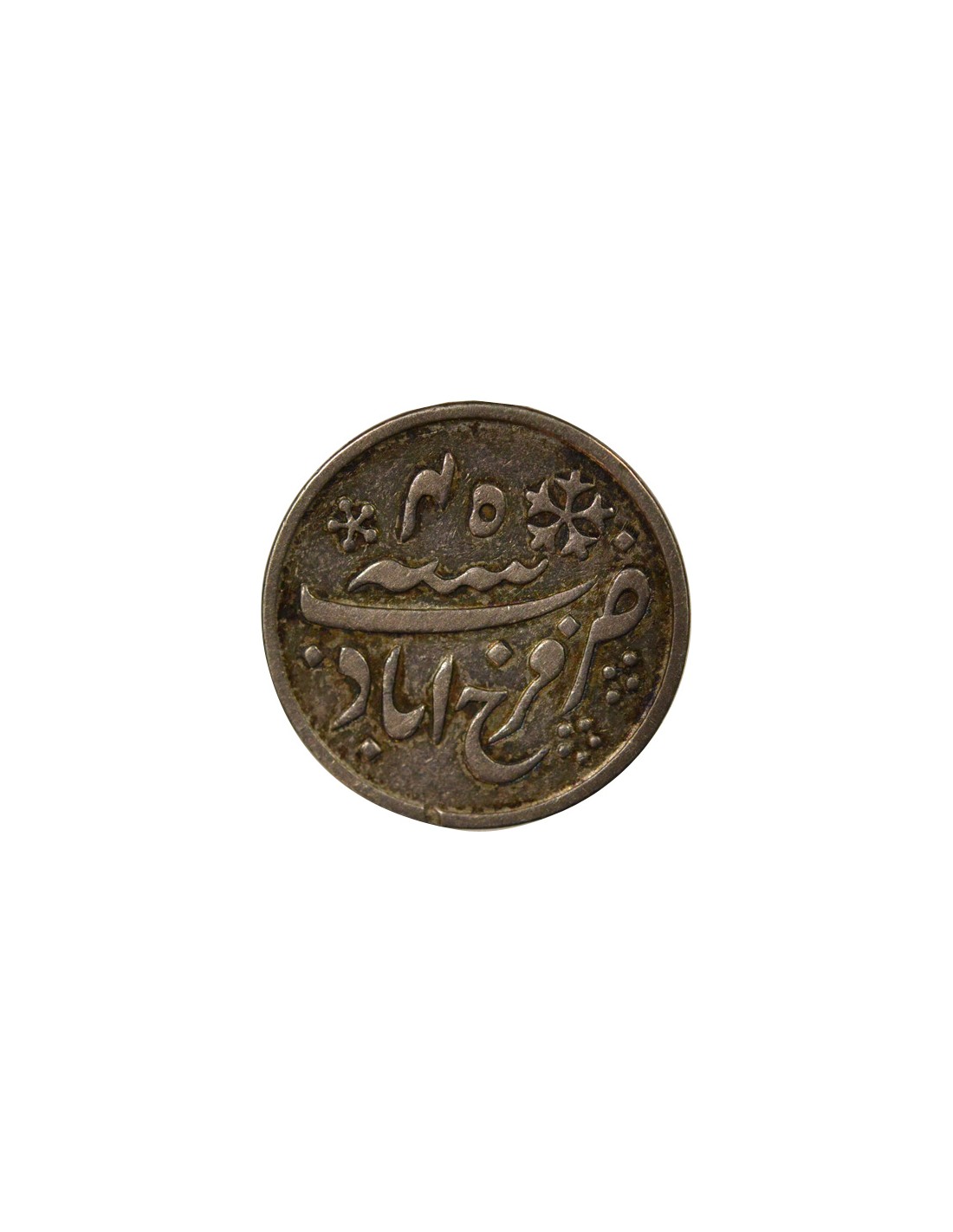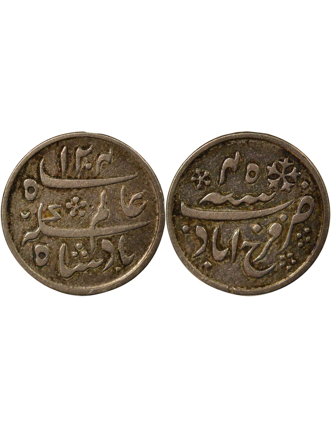 Cette pièce de monnaie est une 1/4 roupie en argent, frappée en Inde. Bien que l'atelier mentionné sur la pièce soit Farrukhabad, elle a été émise à Calcutta, comme l'indique le croissant présent comme marque d'atelier.
