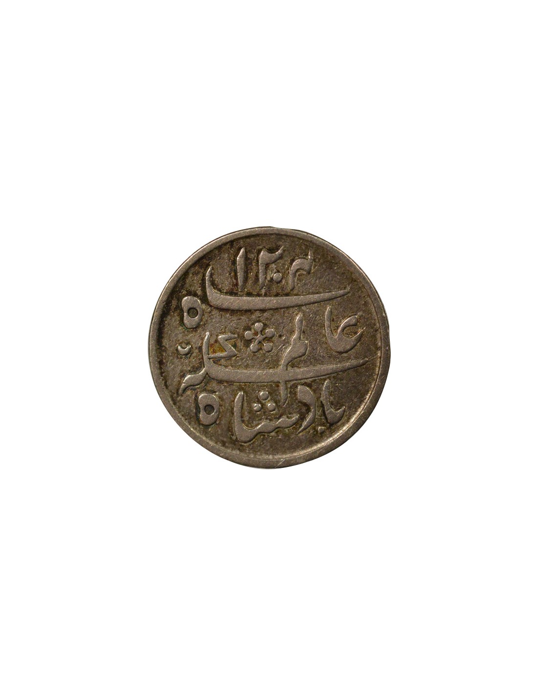 Cette monnaie a été frappée au nom d’Alam II, empereur moghol dont le règne fut marqué par un affaiblissement considérable de l’autorité impériale. À cette époque, la frappe monétaire était fréquemment assurée sous le contrôle de la Compagnie britannique des Indes orientales, tout en conservant le nom de l’empereur pour des raisons de légitimité.