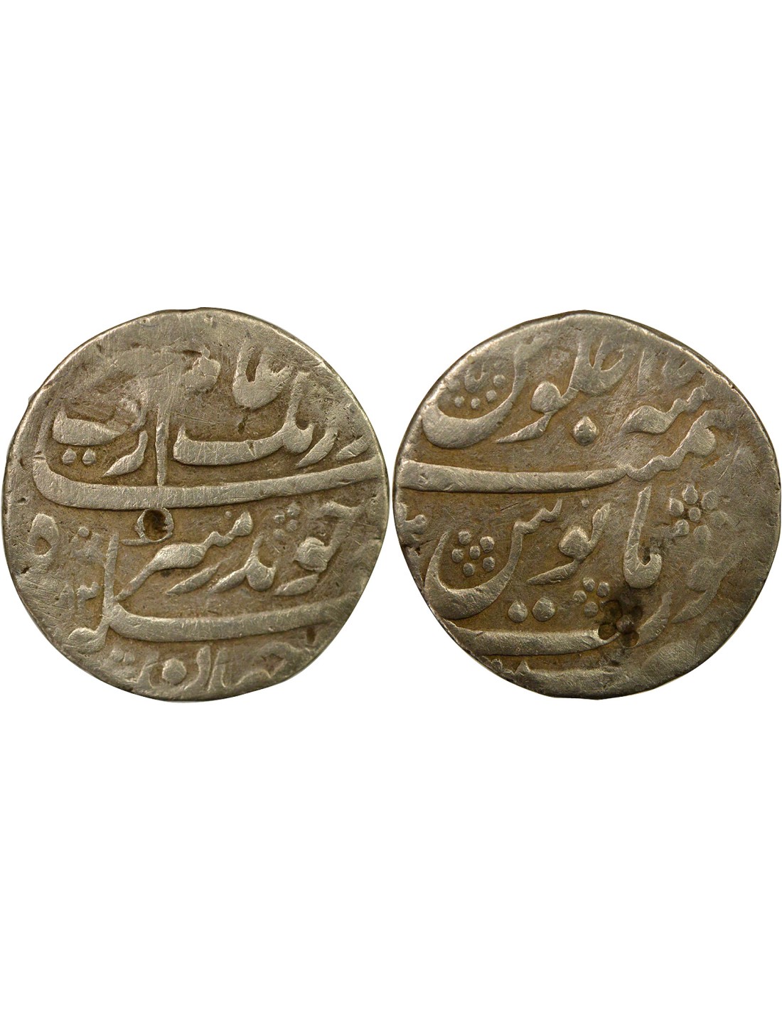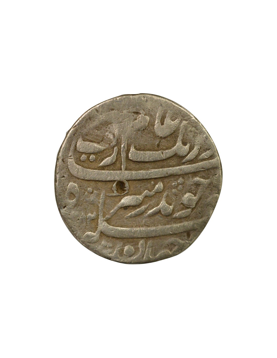 Cette pièce est une roupie en argent, frappée à Surat sous le règne d’Aurangzeb, empereur moghol. Elle date de l’an 1082 du calendrier hégirien (1671–1672).