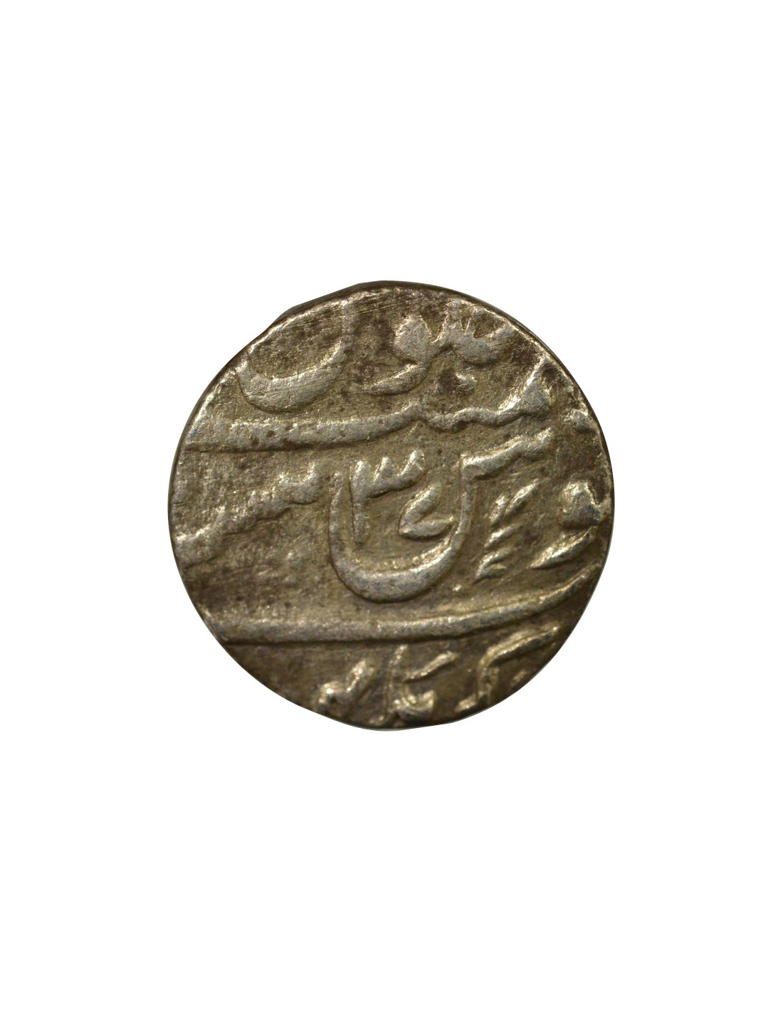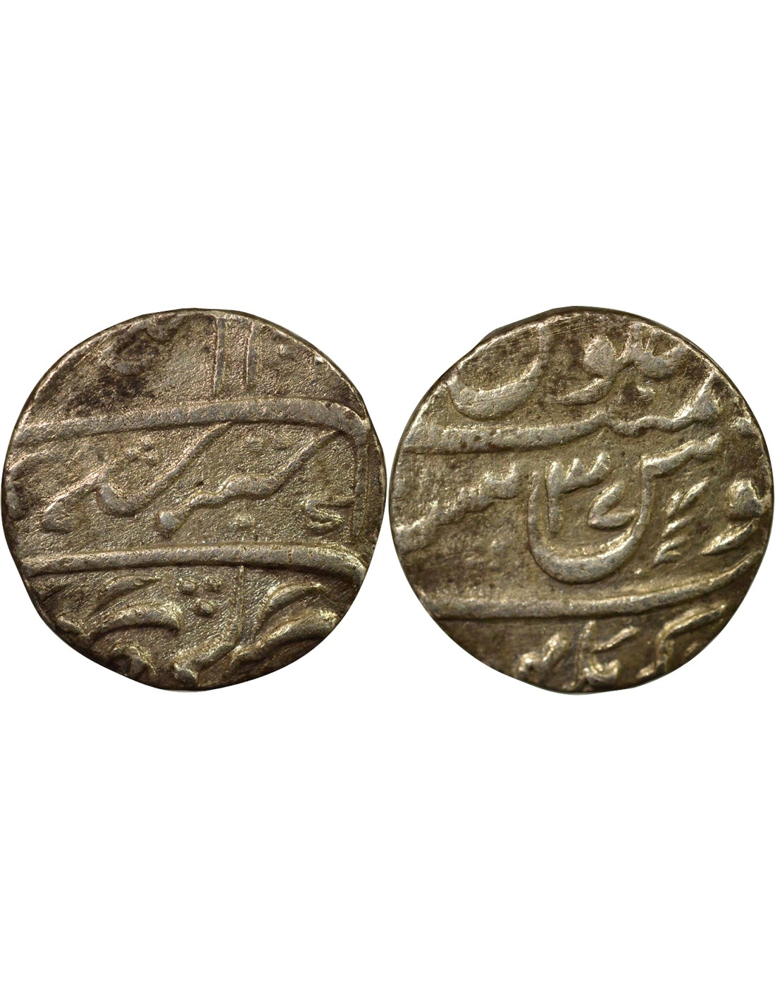 Cette pièce est une roupie en argent, frappée à Akbarnagar sous le règne d’Aurangzeb, empereur moghol. Elle date de la 37e année de son règne (1693).