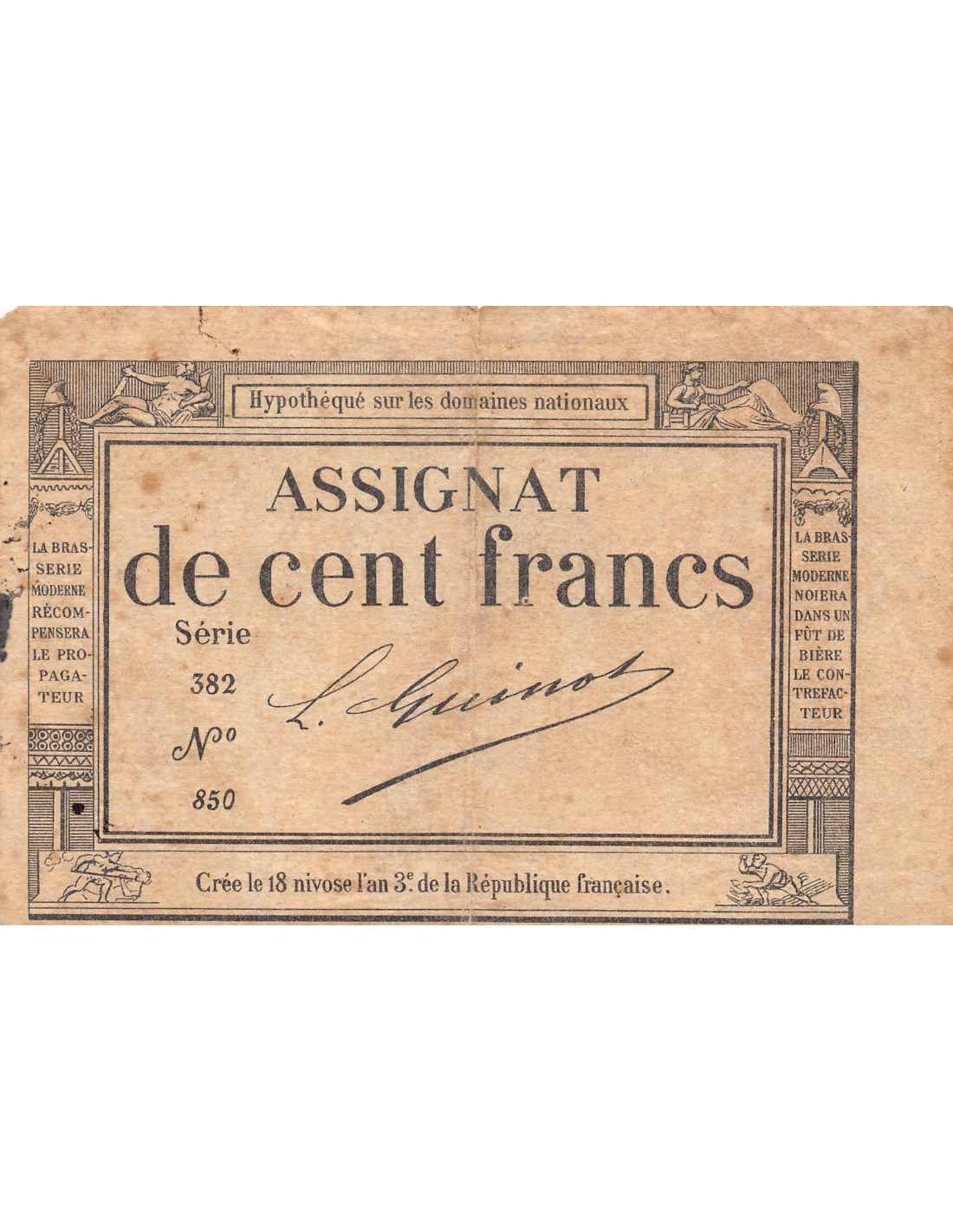 L′assignat était une monnaie fiduciaire mise en place sous la Révolution française.