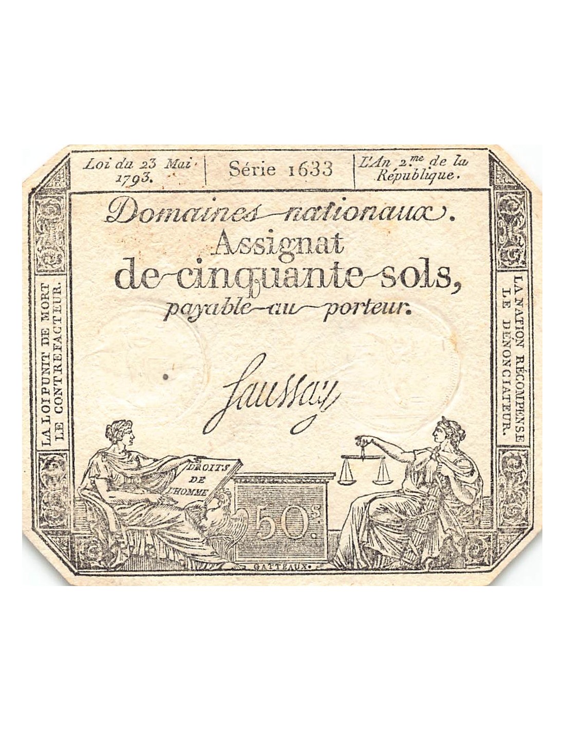Assignat - 50 Sols - Loi Du 23 Mai 1793, Filigrane Rf