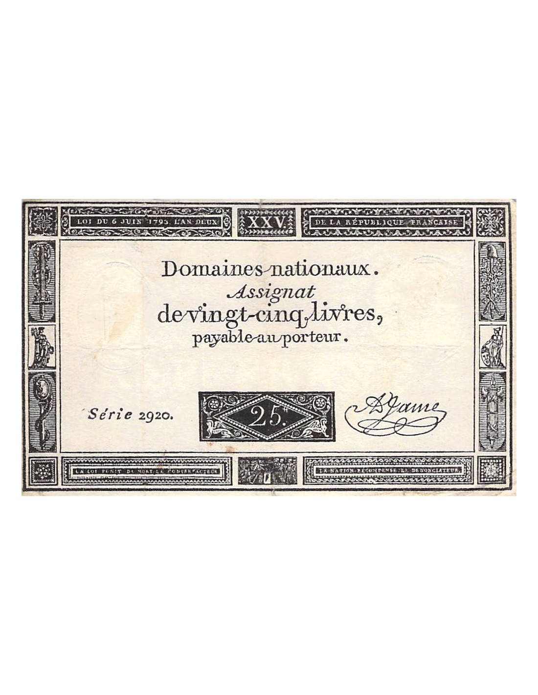 L′assignat était une monnaie fiduciaire mise en place sous la Révolution française.