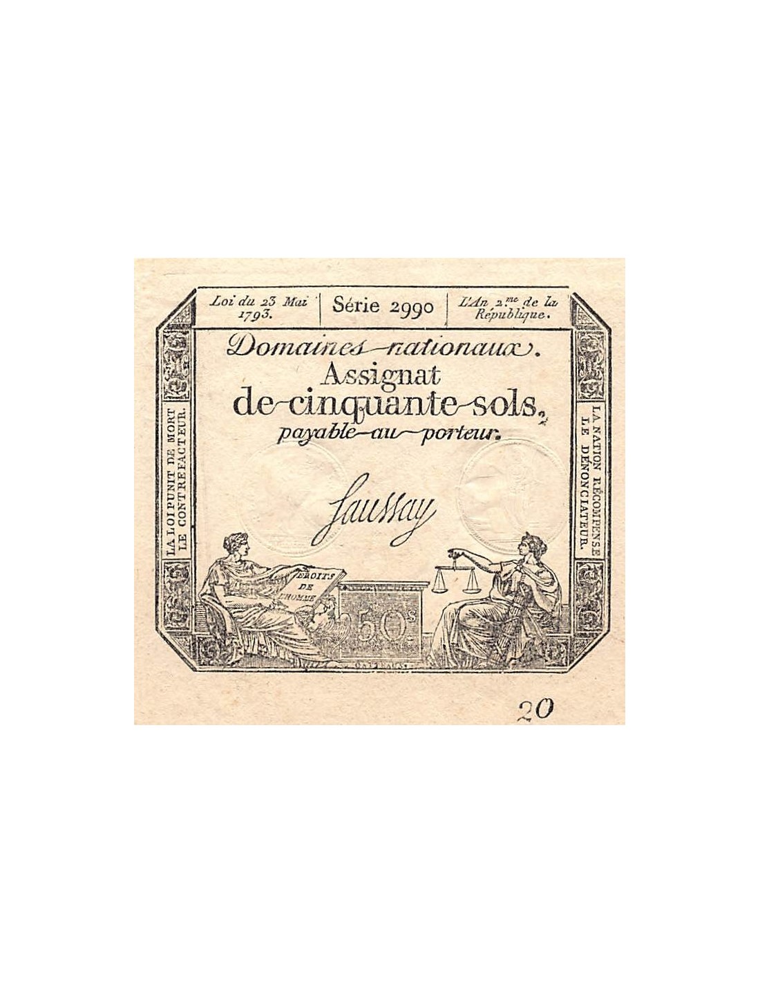 RÉVOLUTION FRANCAISE, ASSIGNAT - 50 SOLS - LOI DU 23/05/1793